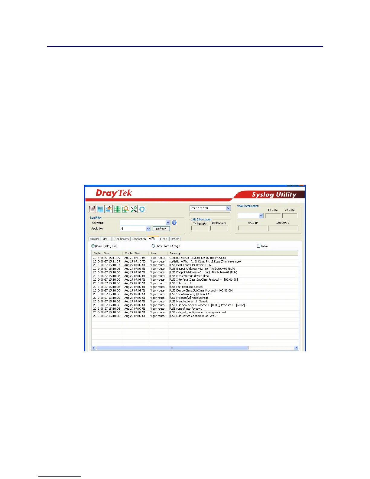 Please open DrayTek Syslog Tool to capture the connection information (WAN Log) and send