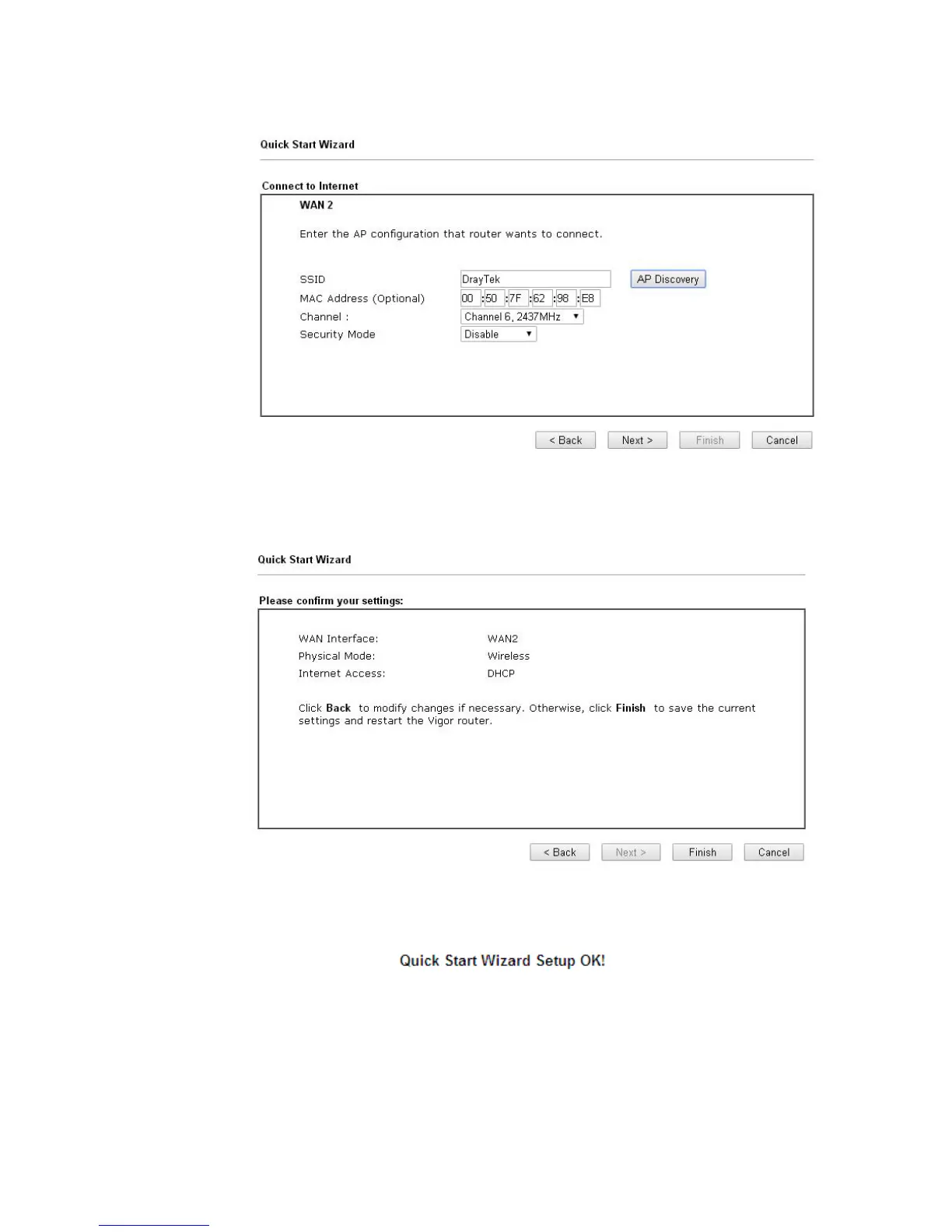 7. Click Finish. A page of Quick Start Wizard Setup OK!!! will appear. Then, the system