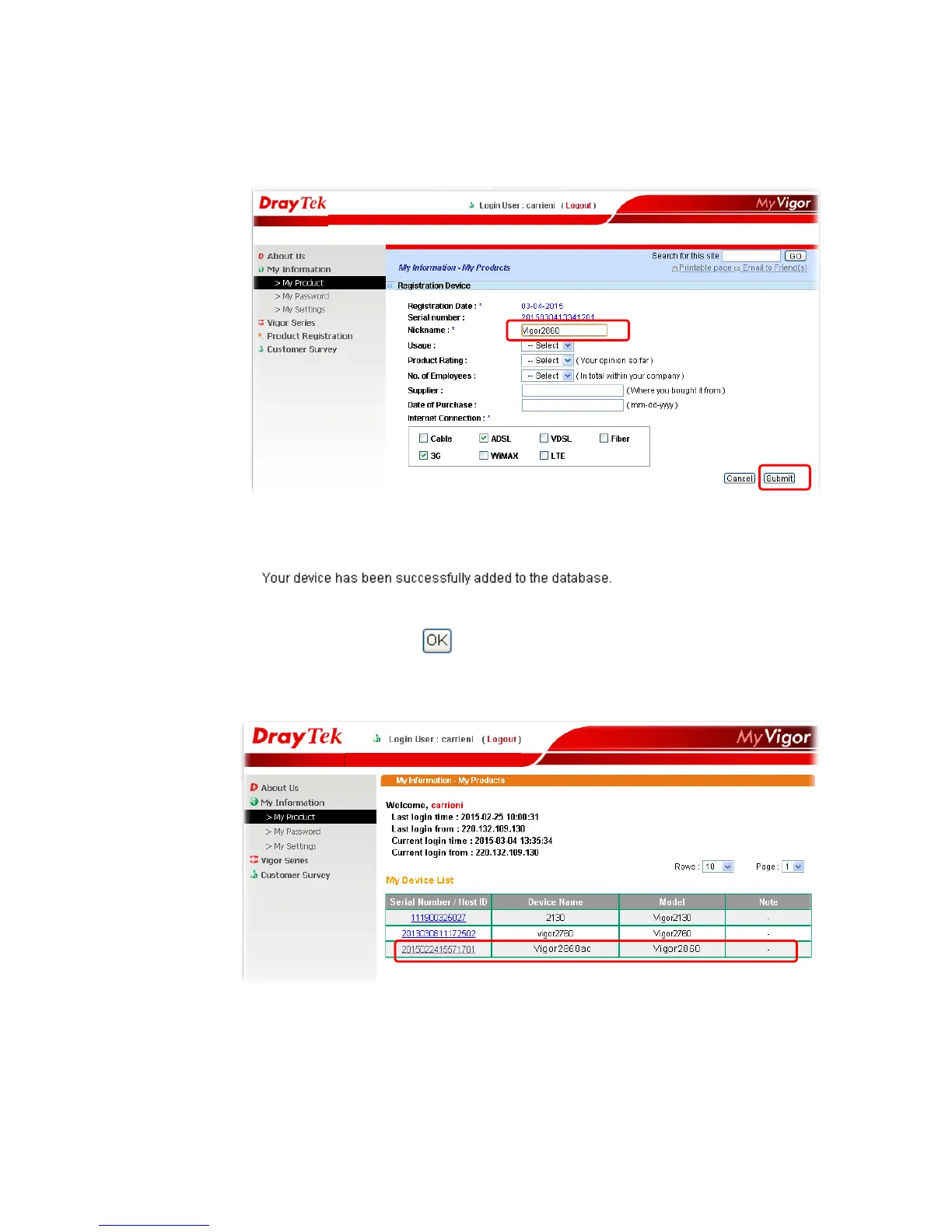 7 After clicking OK, you will see the following page. Your router has been registered to