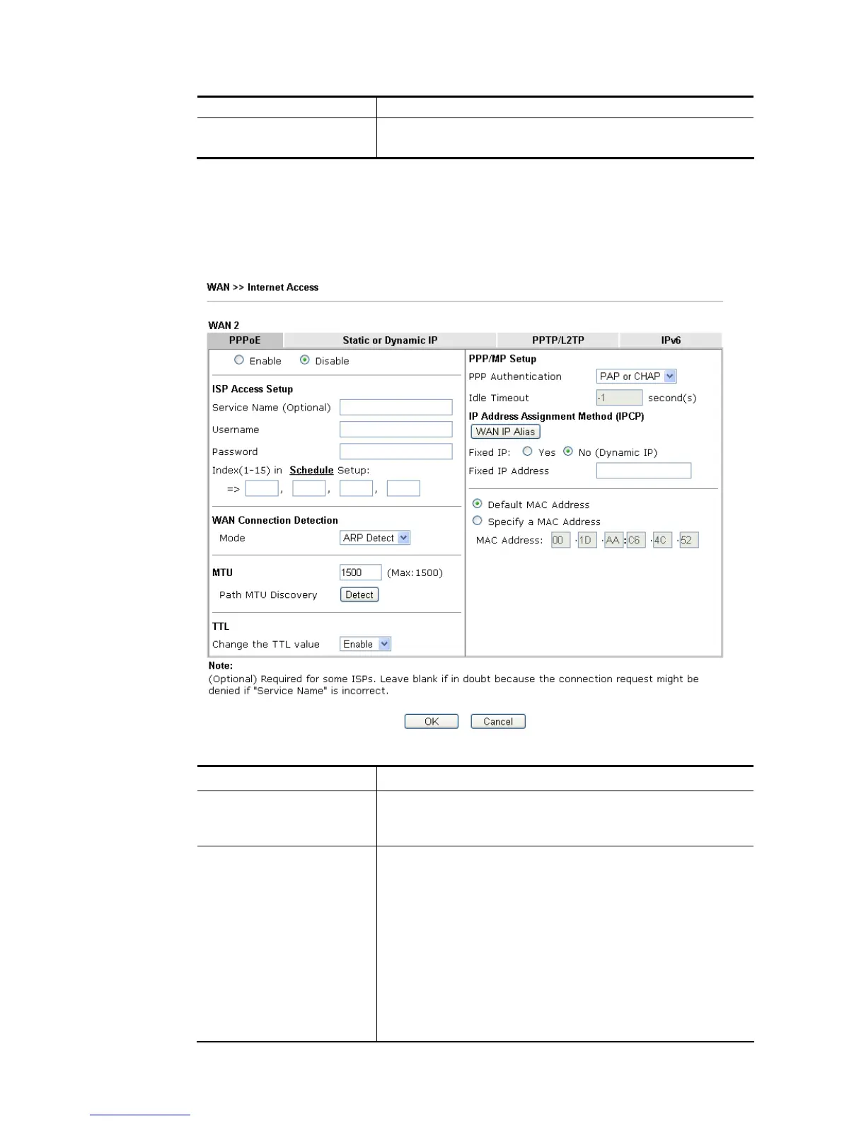 WAN>>Internet Access >>WAN2 page. The following web page will be shown.