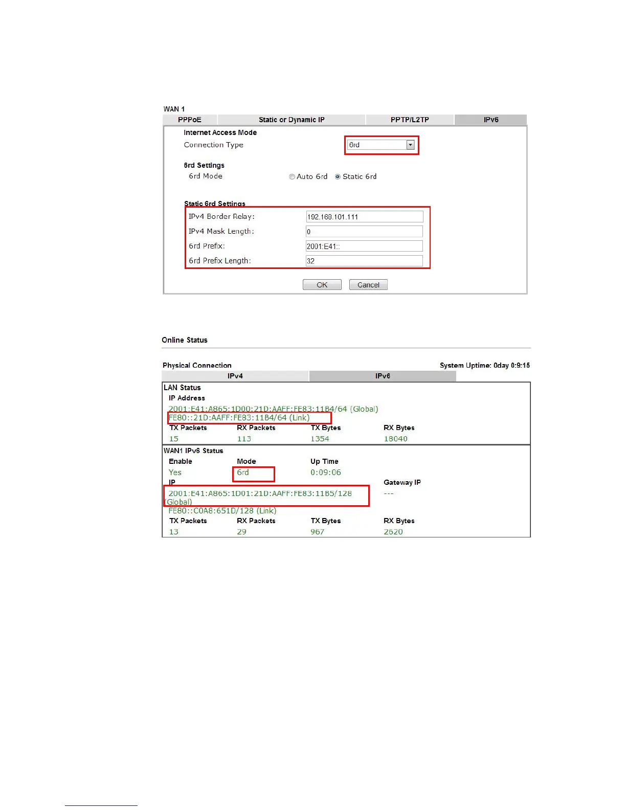Choose 6rd. Type IPv4 Border Relay, IPv4 Mask Length, 6rd Prefix and 6rd Prefix Length.