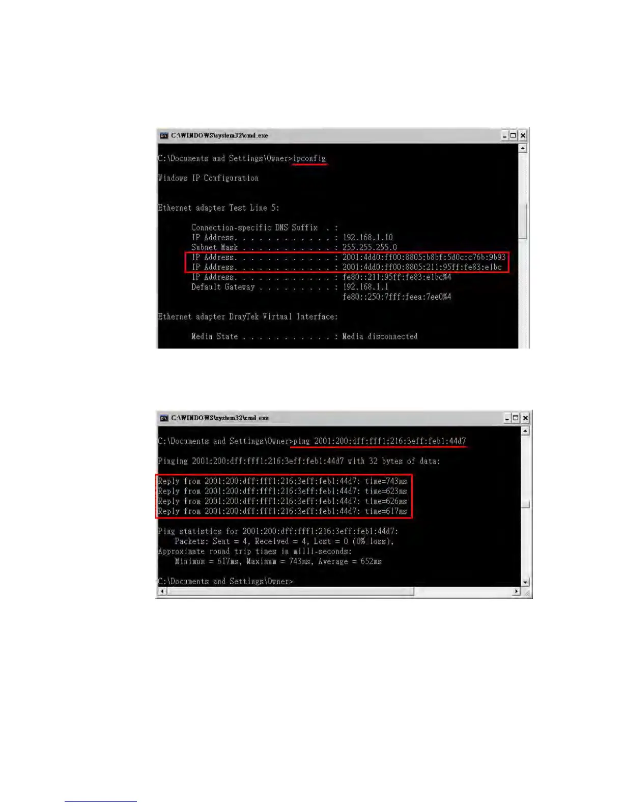 1. Make sure you have obtained the correct IPv6 IP address. Get into MS-DOS interface and