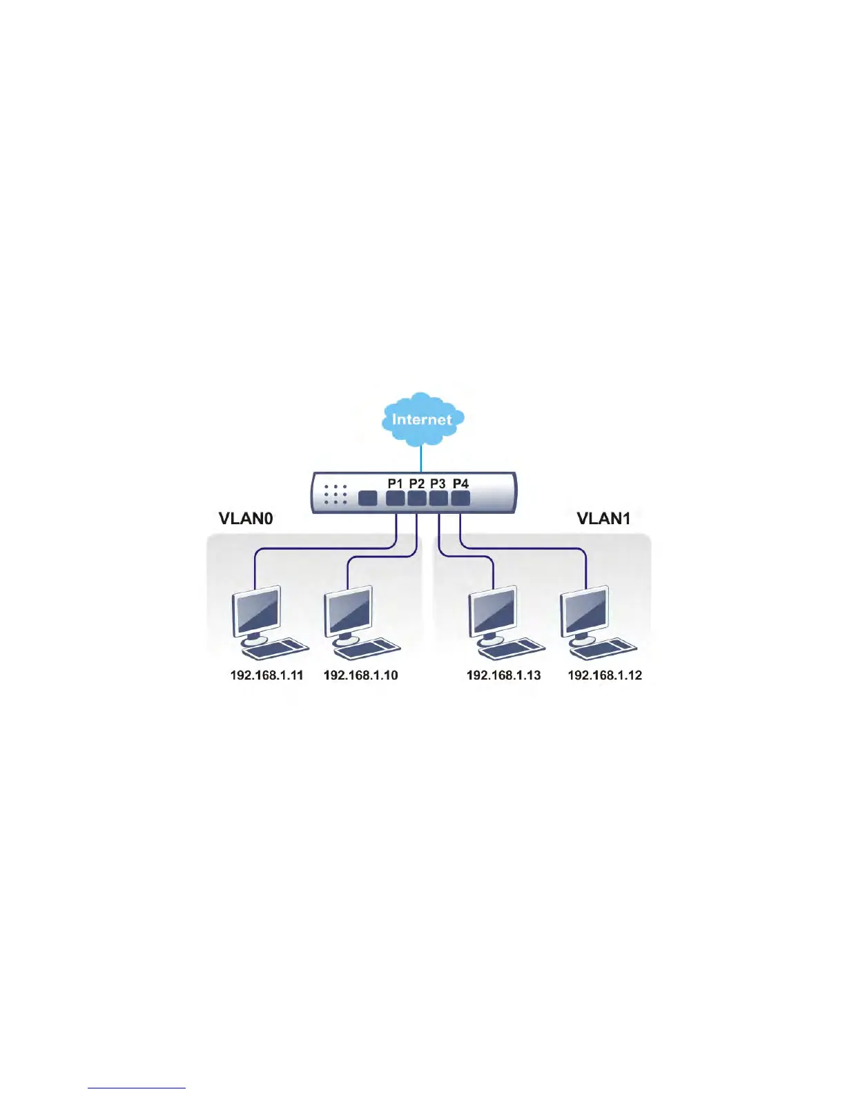 You can group local hosts by physical ports and create up to 8 virtual LANs. To manage the