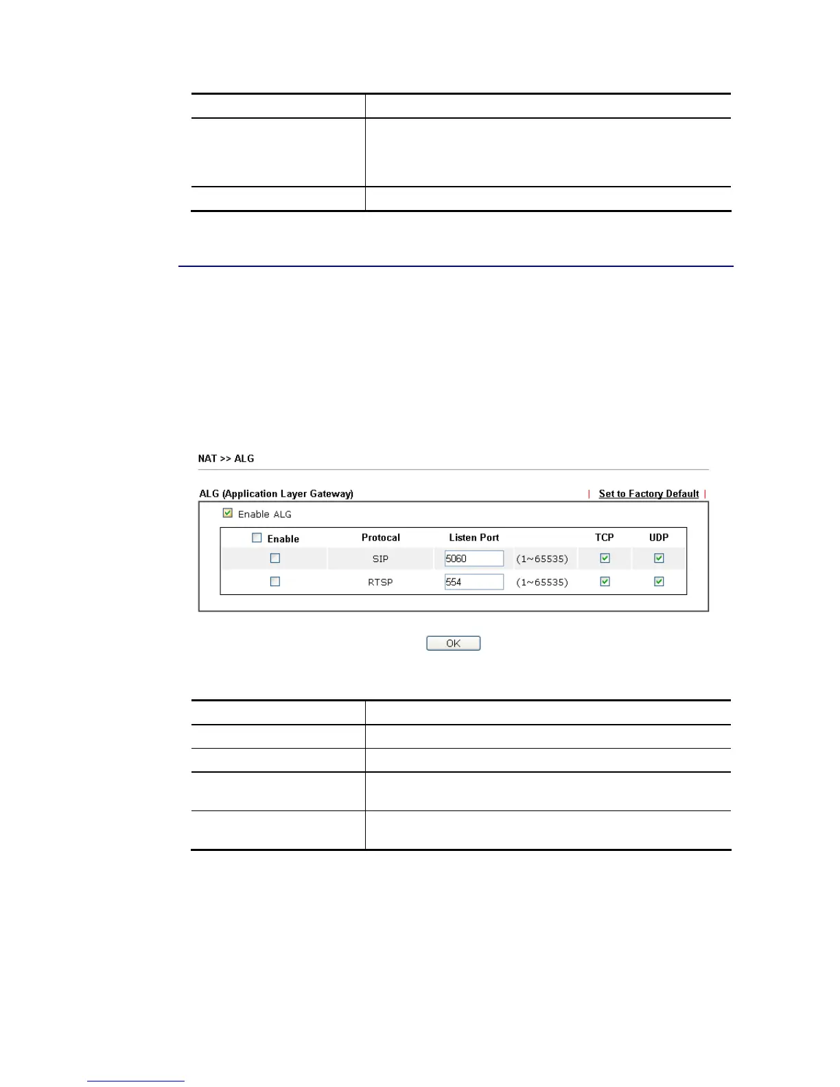ALG means Application Layer Gateway. There are two methods provided by Vigor router,