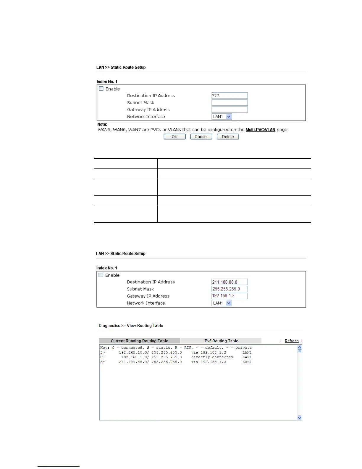 4. Go to Diagnostics and choose Routing Table to verify current routing table.
