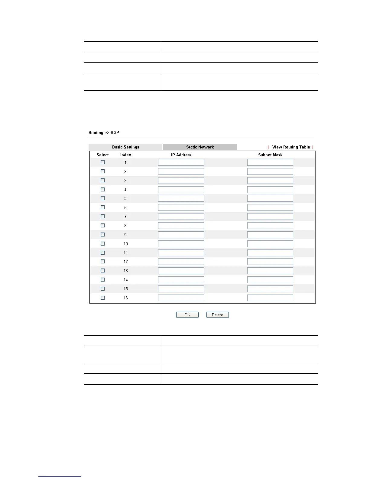 This page allows you to configure up to eight neighboring routers for exchanging the routing