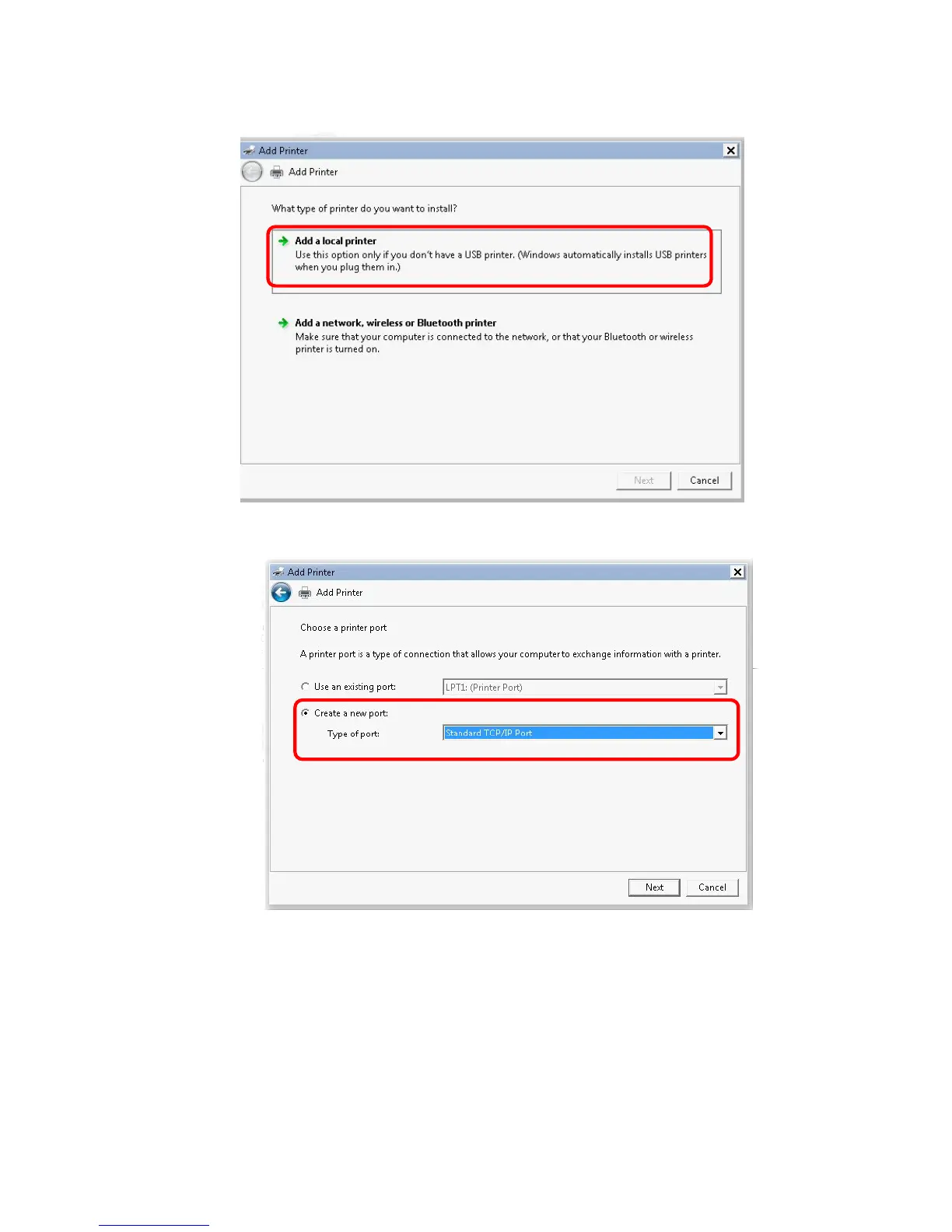 5. In this dialog, choose Create a new port. In the field of Type of port, use the drop down