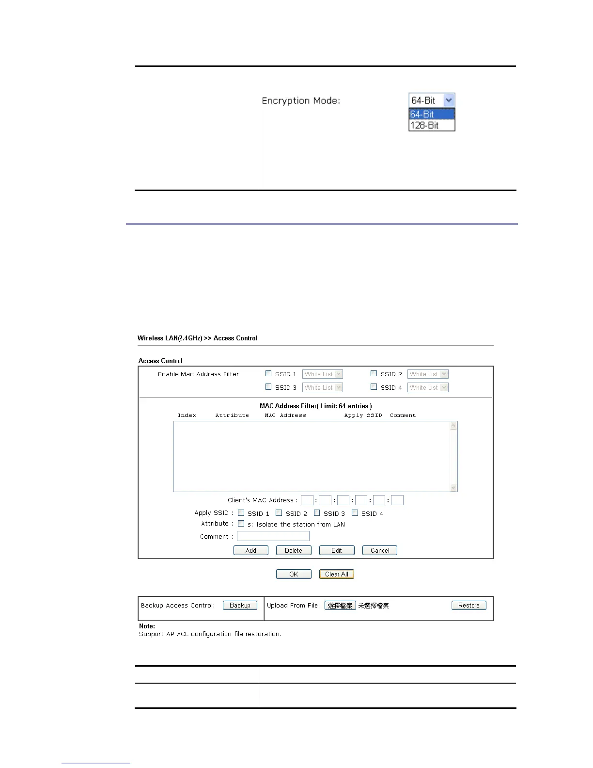 In the Access Control, the router may restrict wireless access to certain wireless clients only