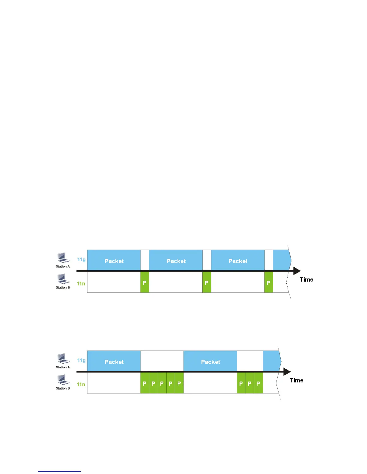 channel, Station B(11n) gets only a little airtime and waits too much because Station A(11g)