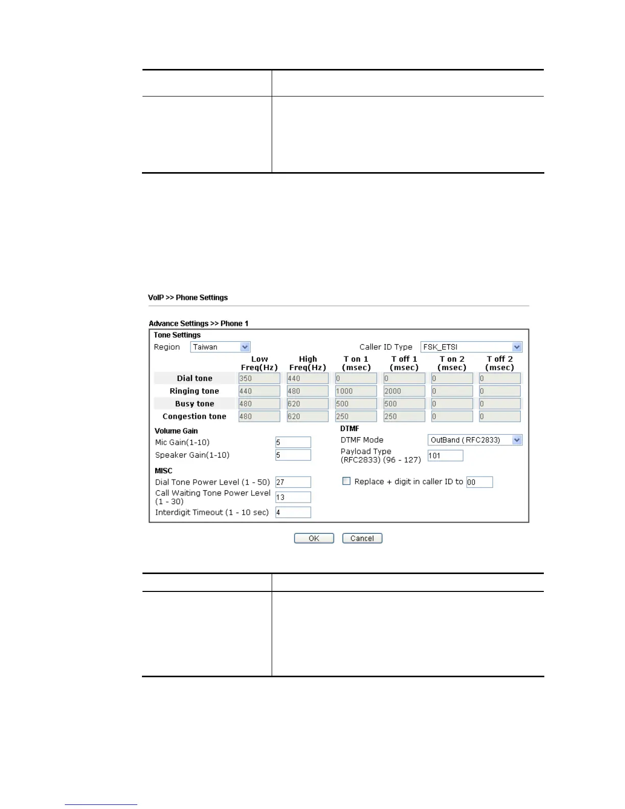 tone settings manually if you choose User Defined. TOn1, TOff1, TOn2 and TOff2 mean the