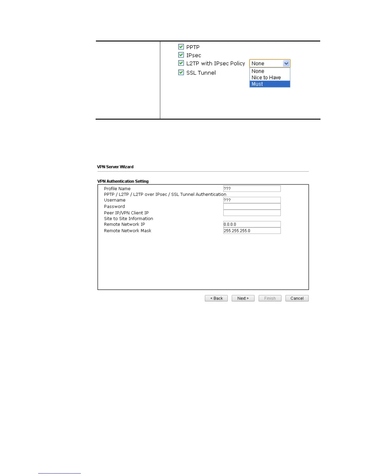 When you check PPTP & IPsec & L2TP (three types) or PPTP & IPsec (two types) or L2TP