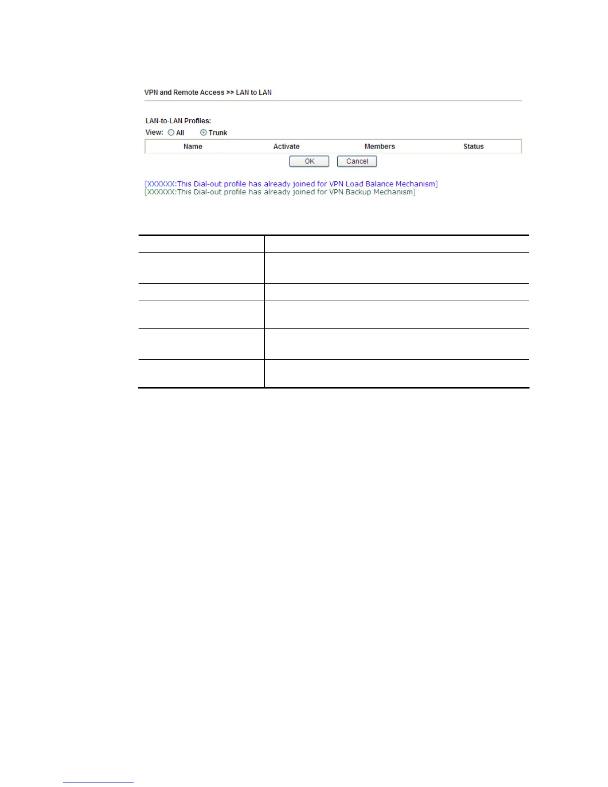 Name Indicate the name of the LAN-to-LAN profile. The symbol ???