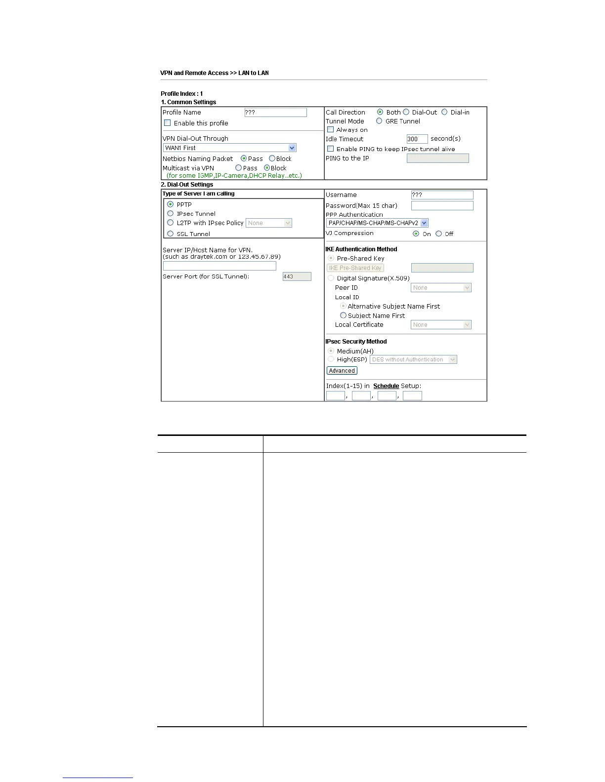 VPN Dial-Out Through - Use the drop down menu to choose a