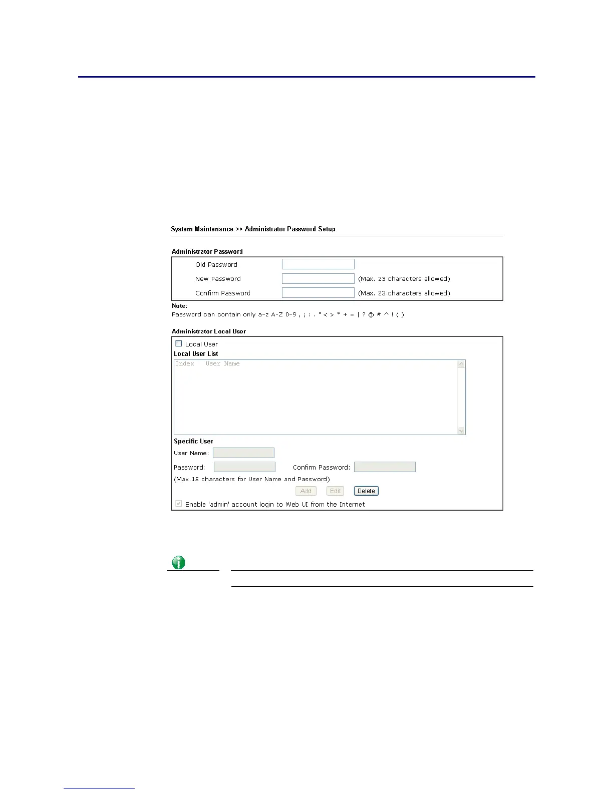 4. Enter the login password (the default is “admin”) on the field of Old Password. Type