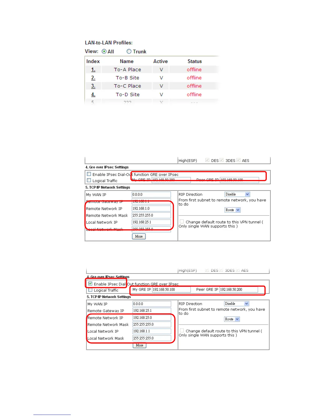 3. Later, on peer side (as VPN Client): please type 192.168.50.100 in the field of My GRE IP