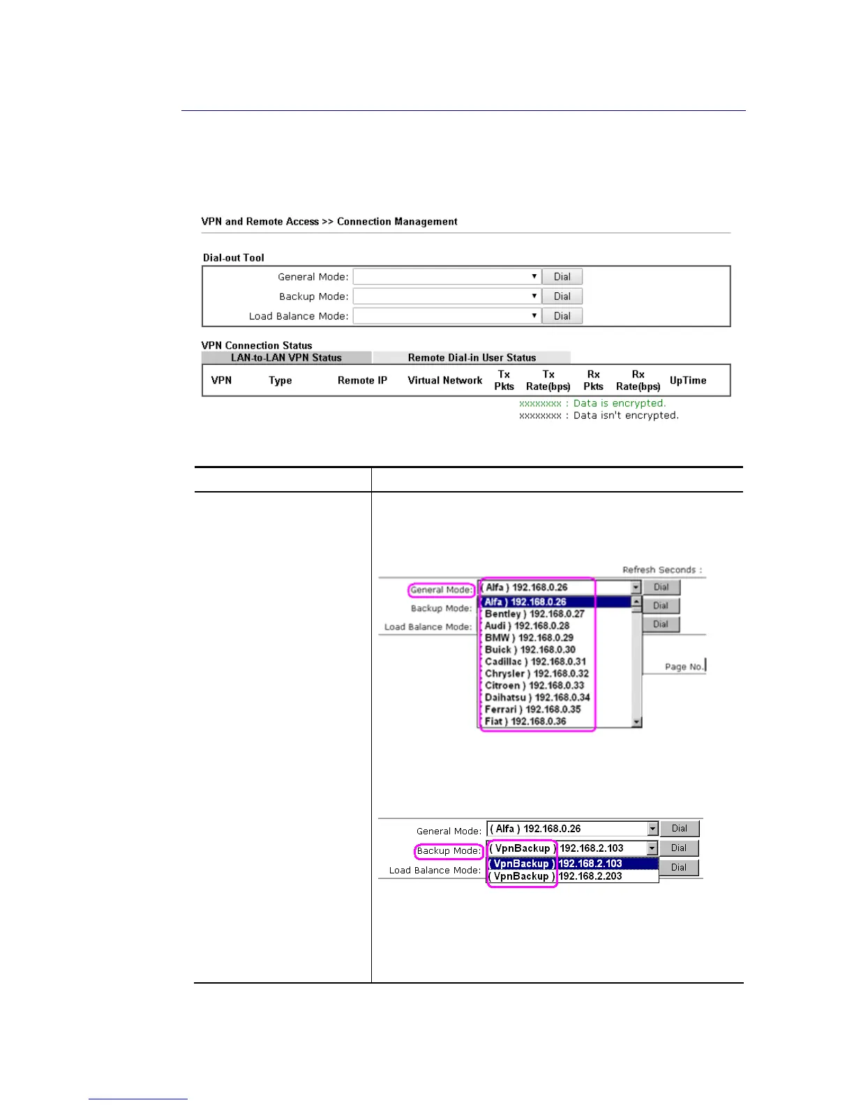 LAN-to-LAN (with Index number and VPN Server IP address).