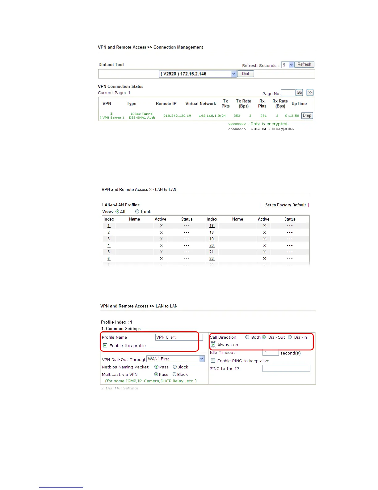 2. Open VPN and Remote Access>>LAN to LAN to create a LAN-to-LAN profile. The
