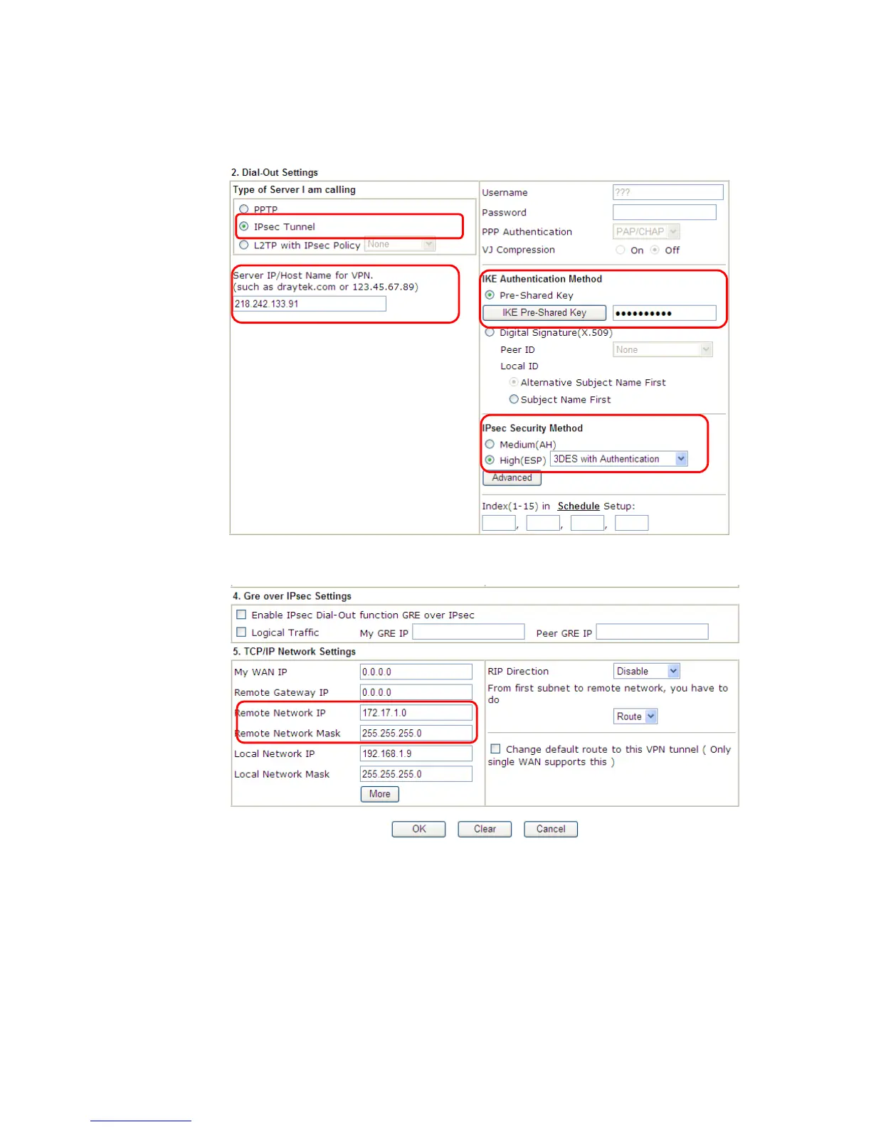 4. Now navigate to the next section, Dial-Out Settings to select the IPsec Tunnel service