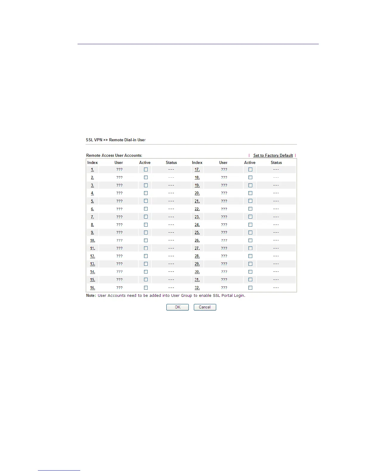 deploying user accounts. Therefore, the user account for SSL VPN must be set together with