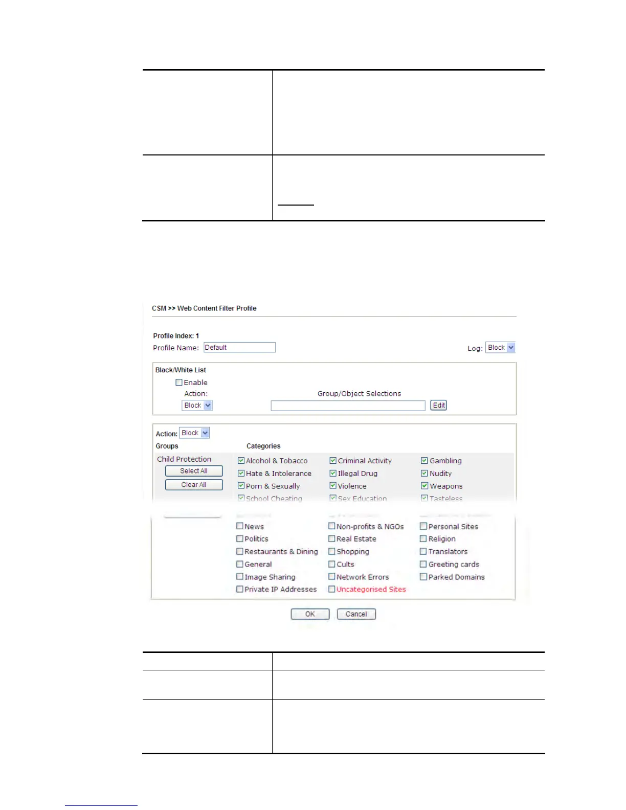 Eight profiles are provided here as Web content filters. Simply click the index number under