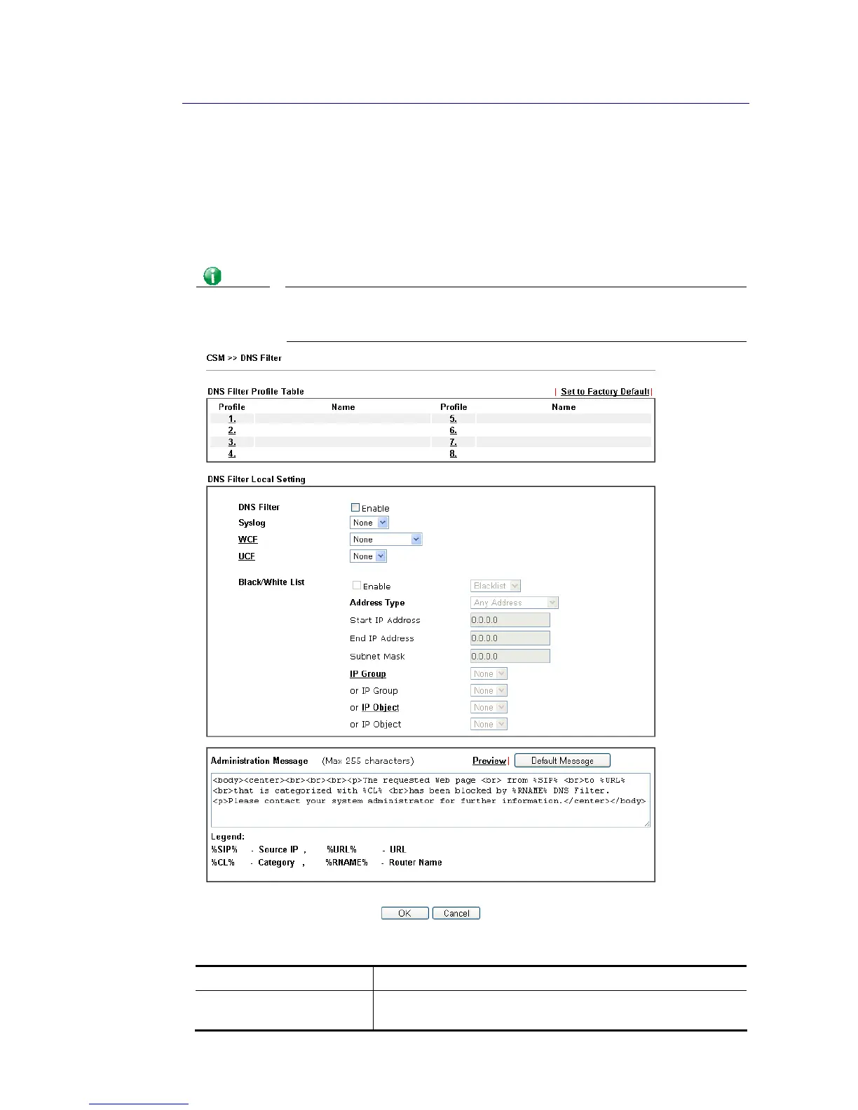 or external DNS server (e.g., 8.8.8.8). If the router server is used, DNS Filter General Setting