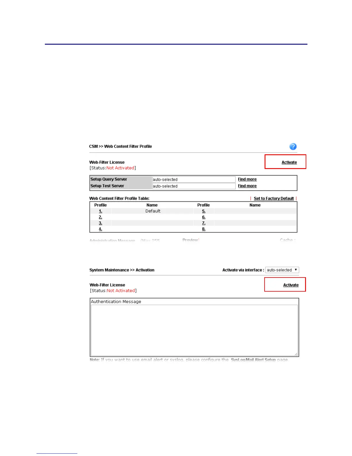 Click System Maintenance>>Activation to open the following page.