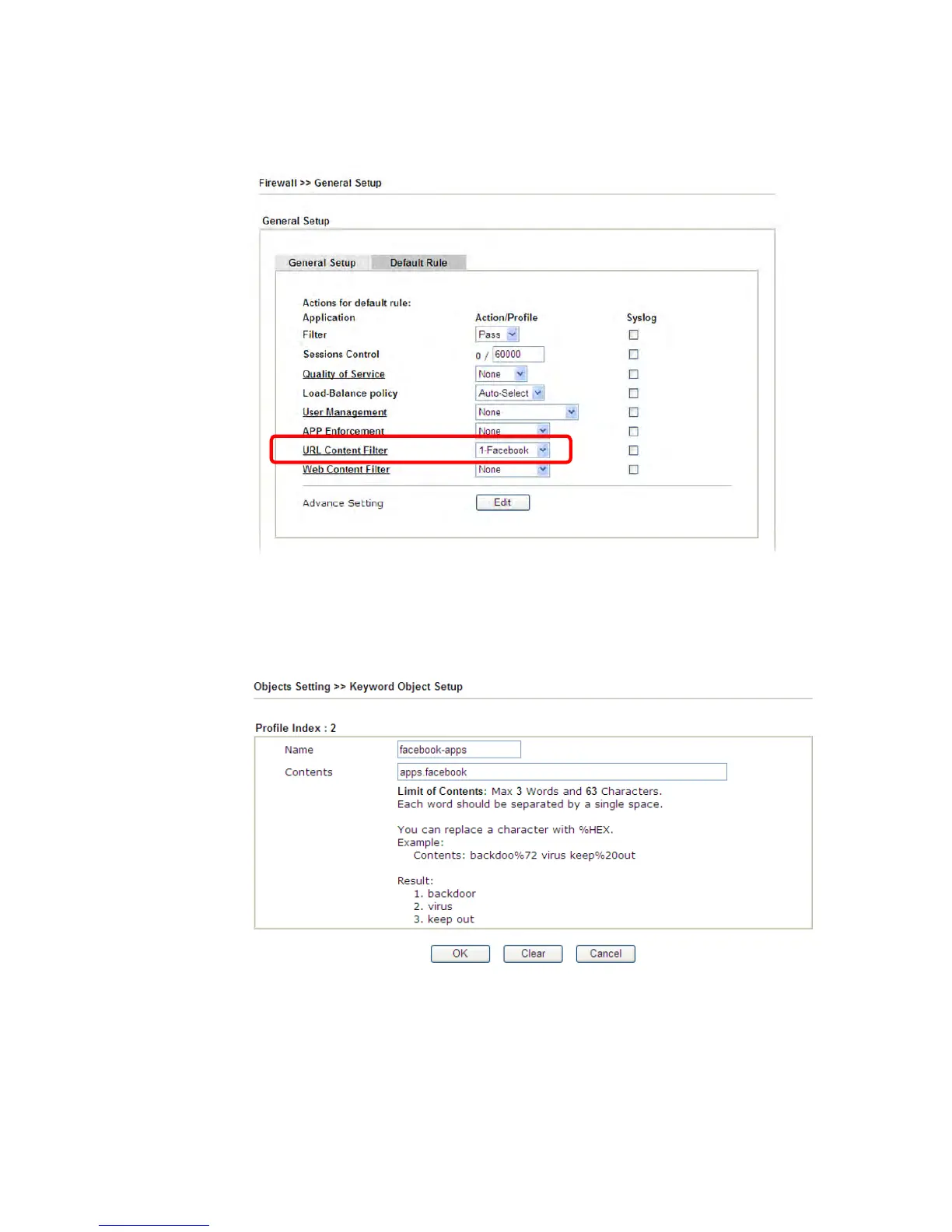 1. Open Object Settings>>Keyword Object. Click an index number to open the setting