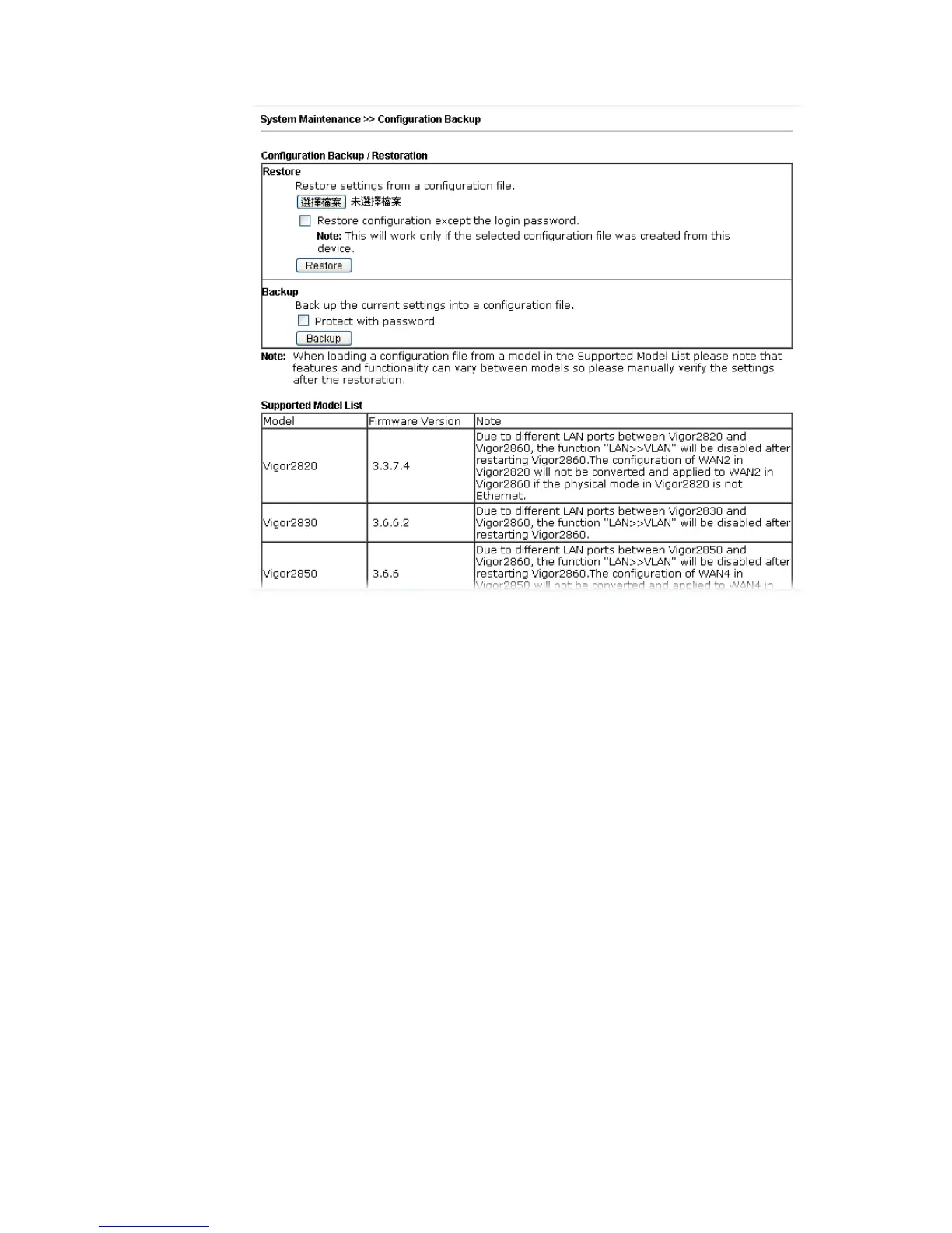 2. Click Choose File button to choose the correct configuration file for uploading to the