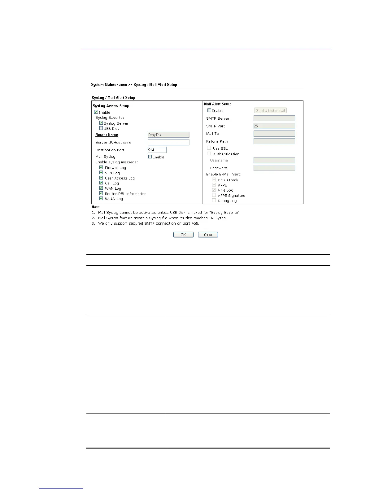 Mail Syslog – Check the box to recode the mail event on