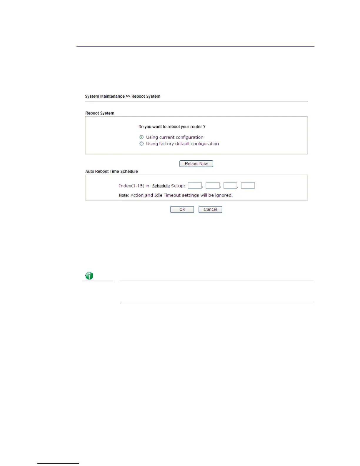 Using factory default configuration and click Reboot Now. The router will take 5 seconds to