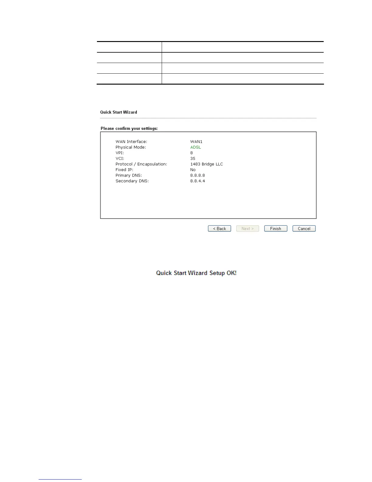 3. Click Finish. A page of Quick Start Wizard Setup OK!!! will appear. Then, the system