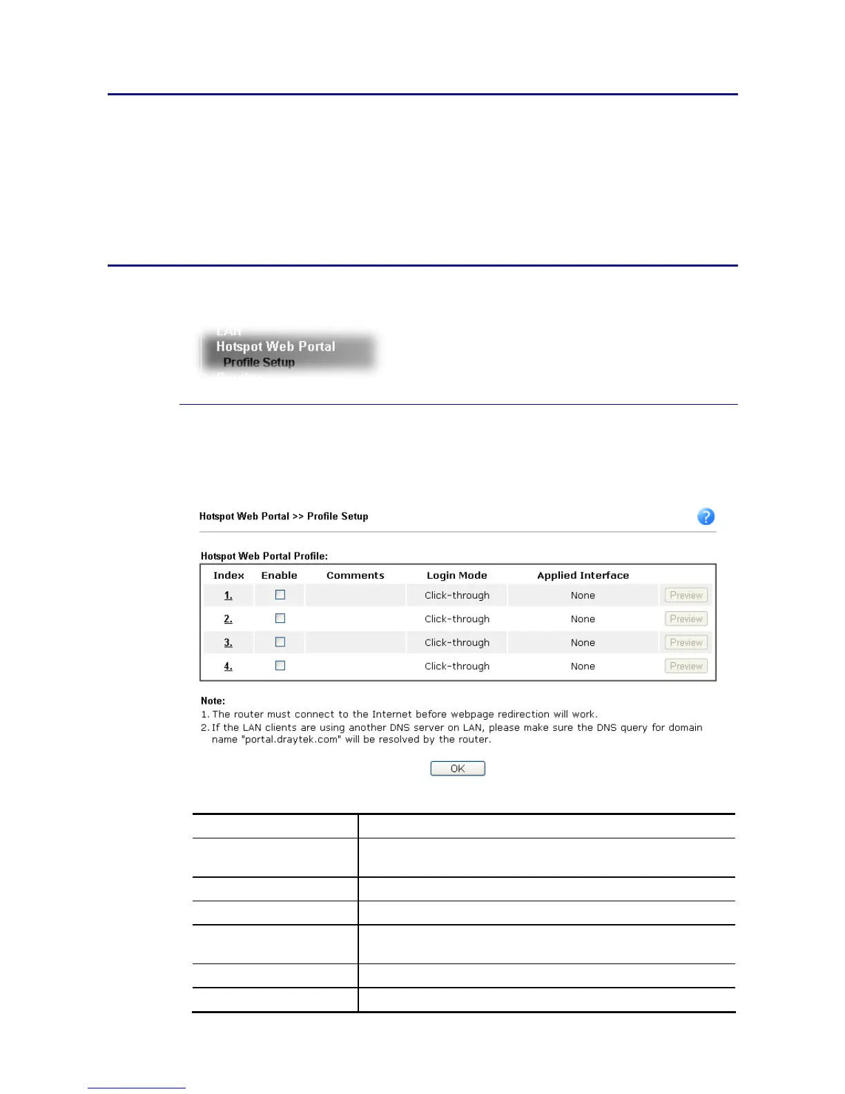 The Hotspot Web Portal feature allows you to set up profiles so that LAN users could either be