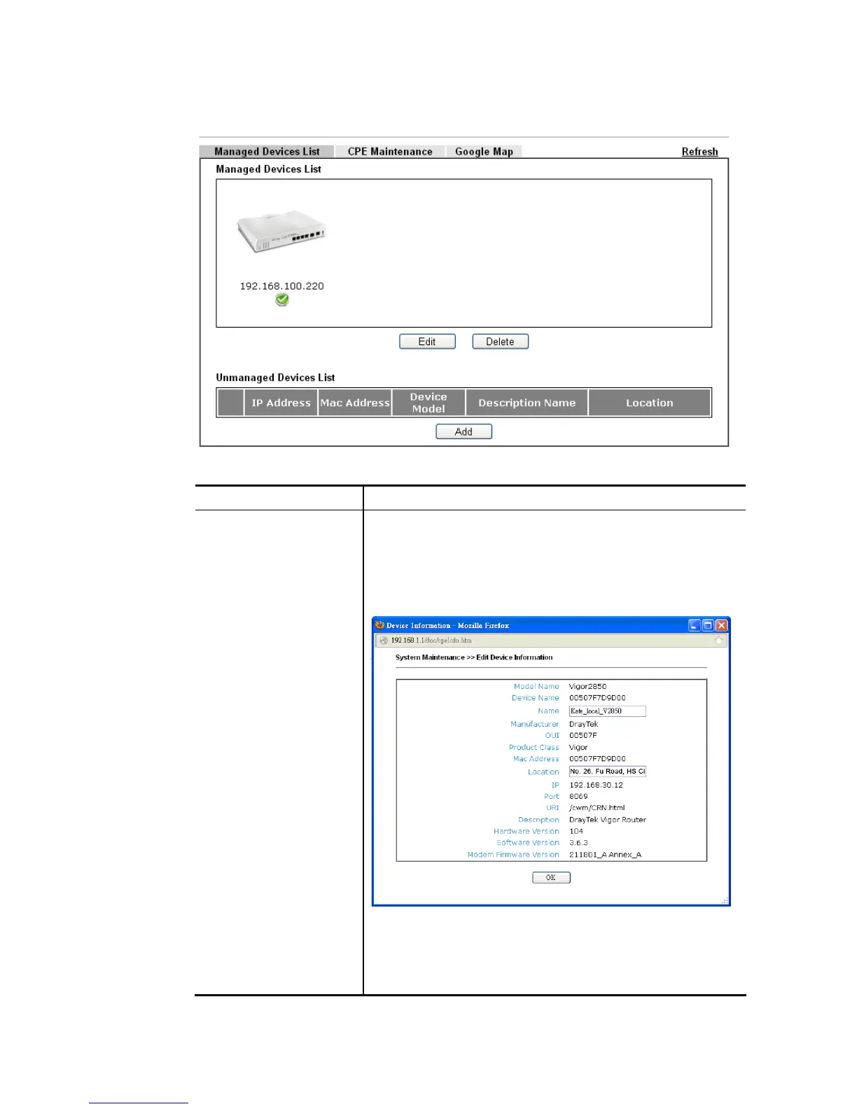 Managed Devices List This area displays device icons (up to 8) for the CPE managed