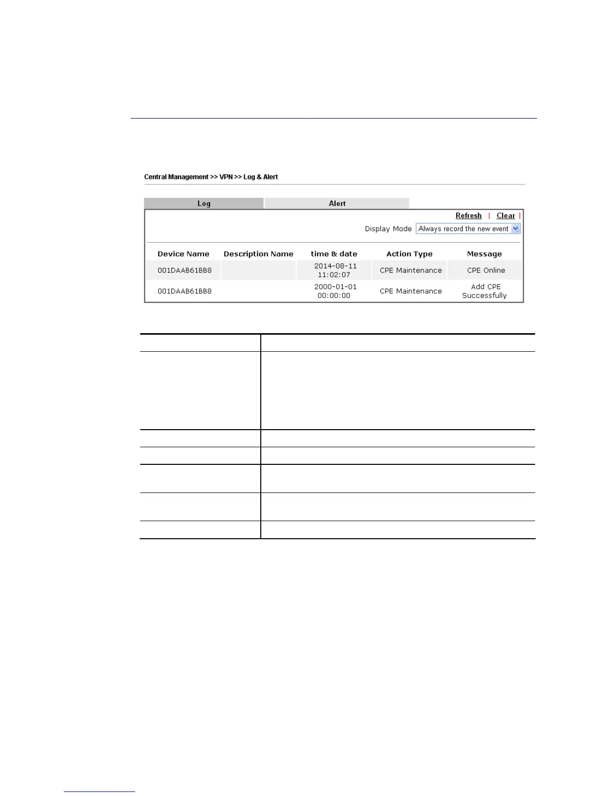 The Alert page offers brief information to identify the CPE connected to Vigor2860 series.
