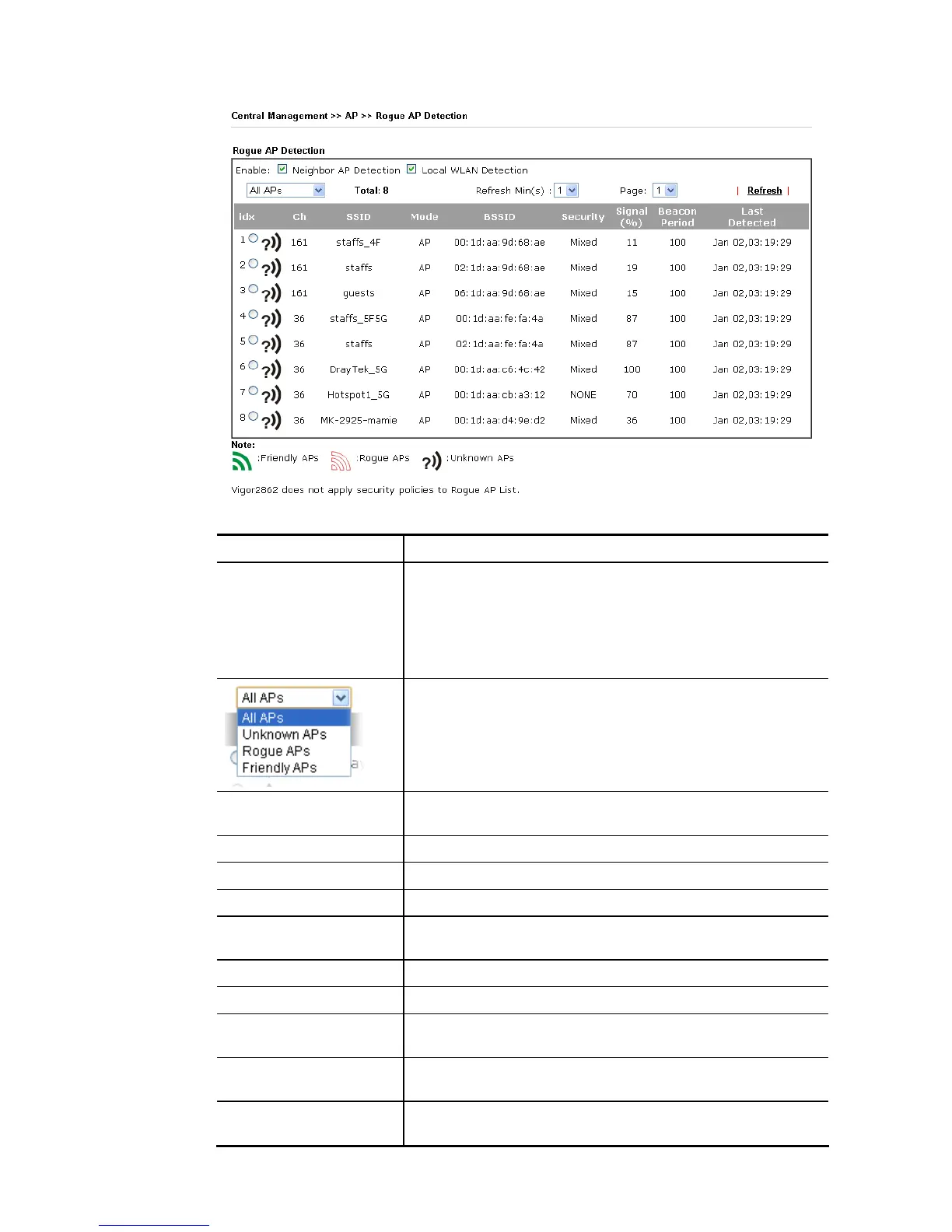 Last Detected Display the date and time that such access point was detected