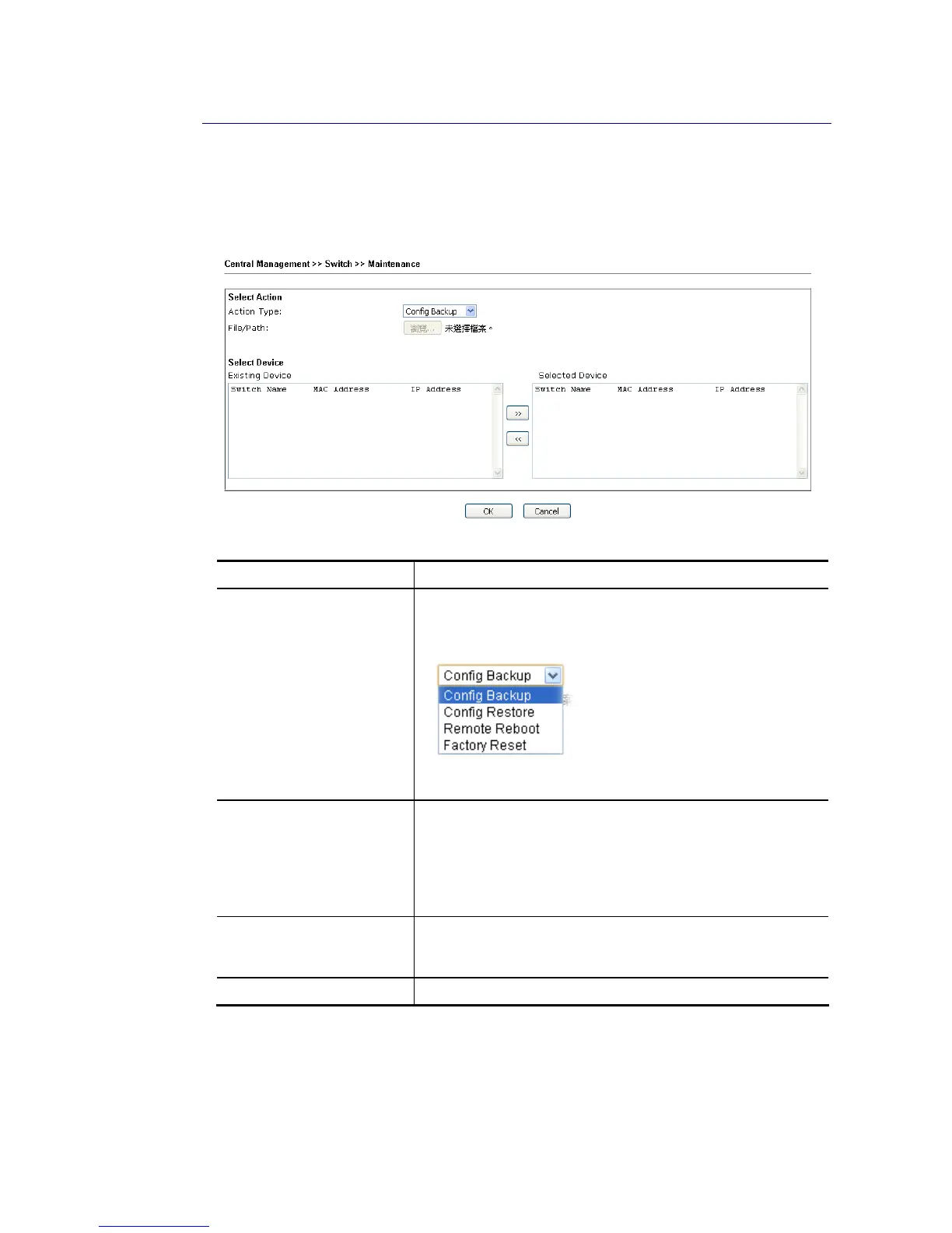 Such feature can execute configuration backup, restore of selected VigorSwitch device(s) or