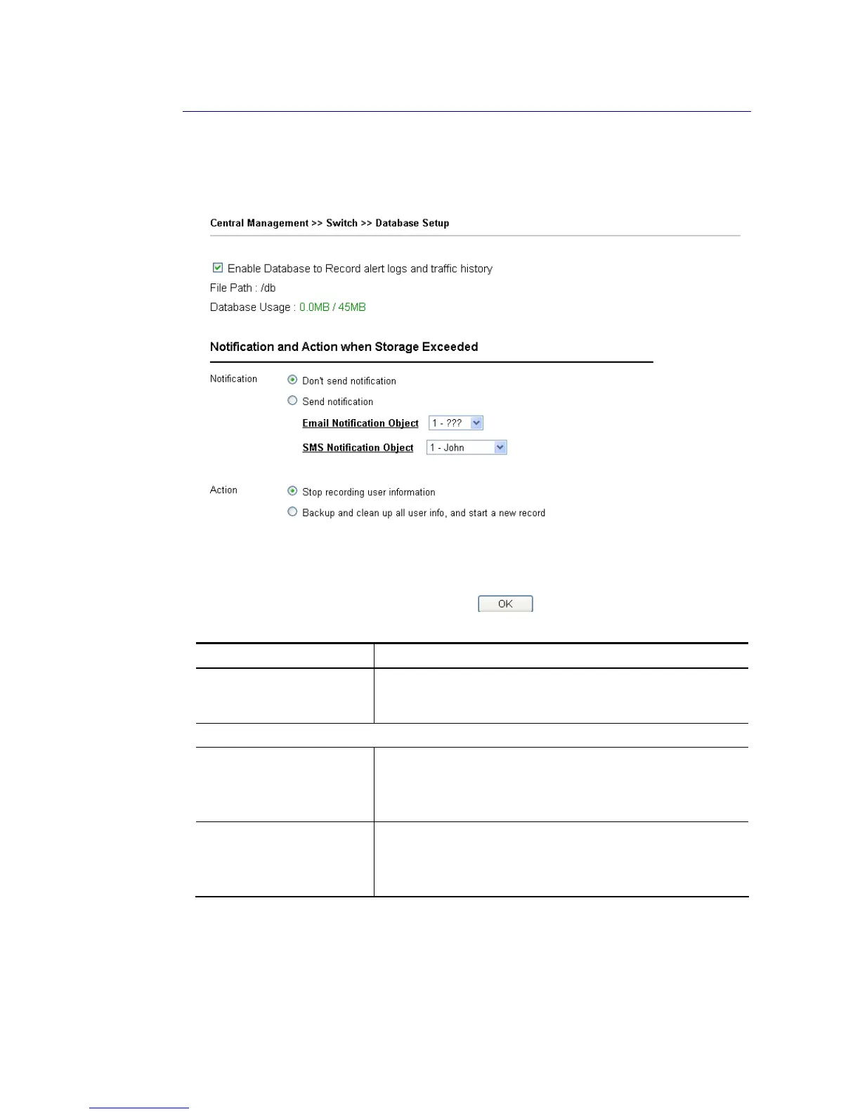 The database of switch can be used to record alert logs and traffic history. This page is used