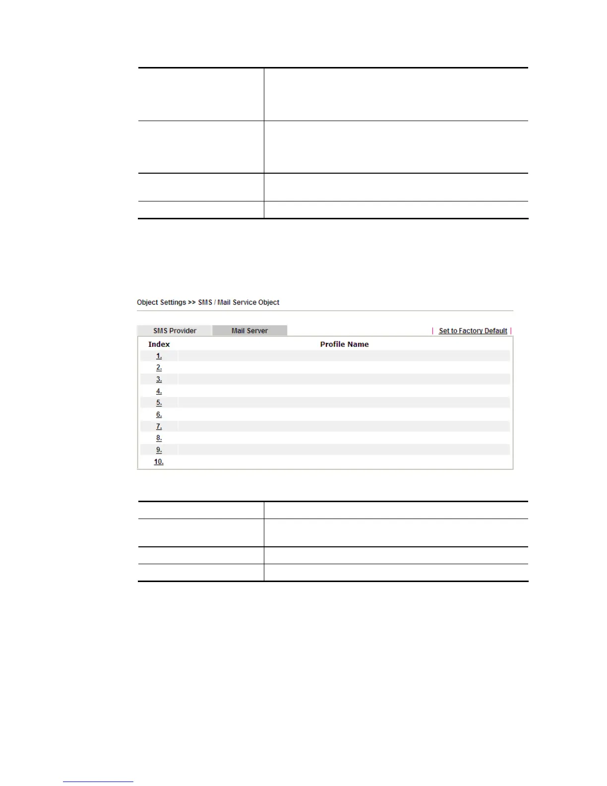 This page allows you to set ten profiles which will be applied in Application>>SMS/Mail Alert