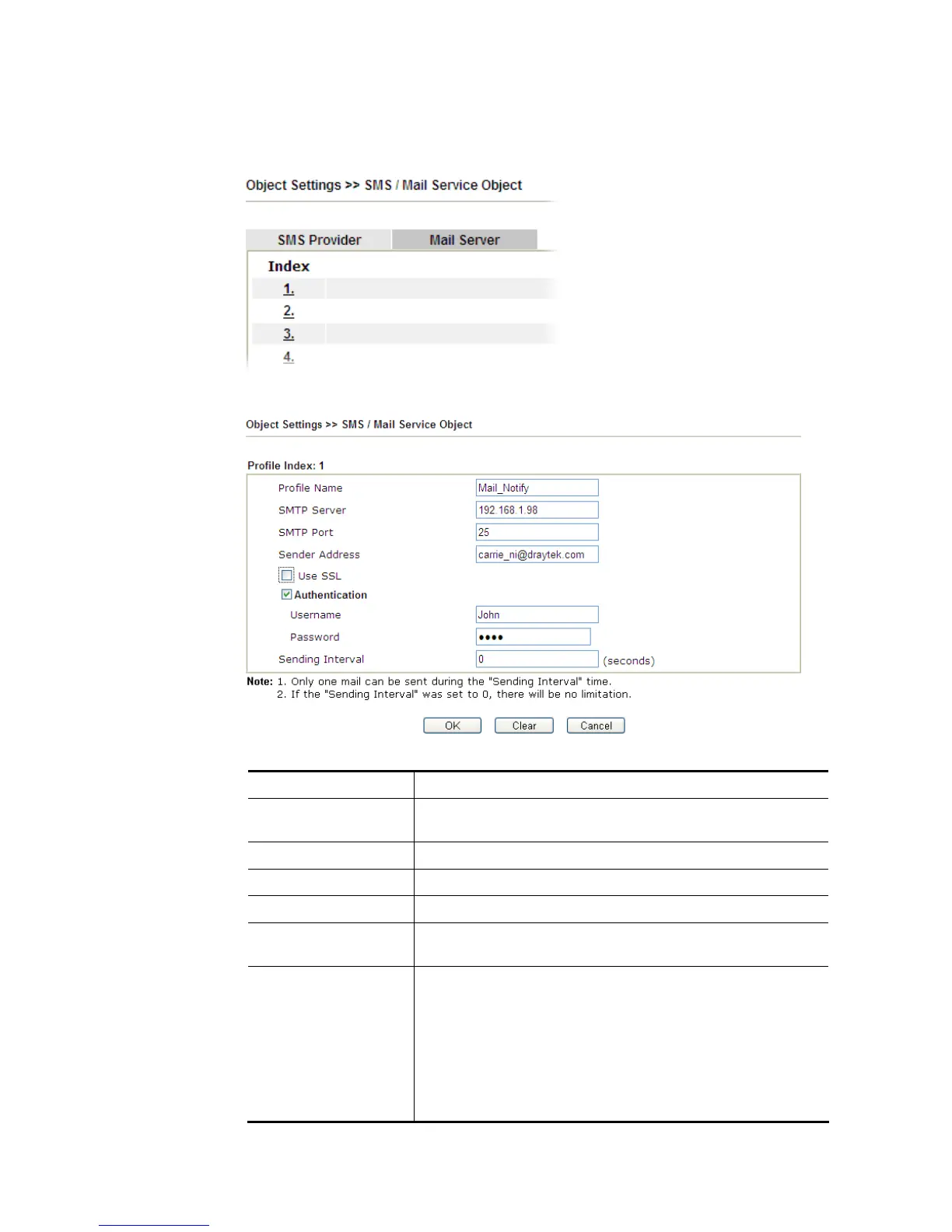 1. Click the Mail Server tab, and click the number (e.g., #1) under Index column for