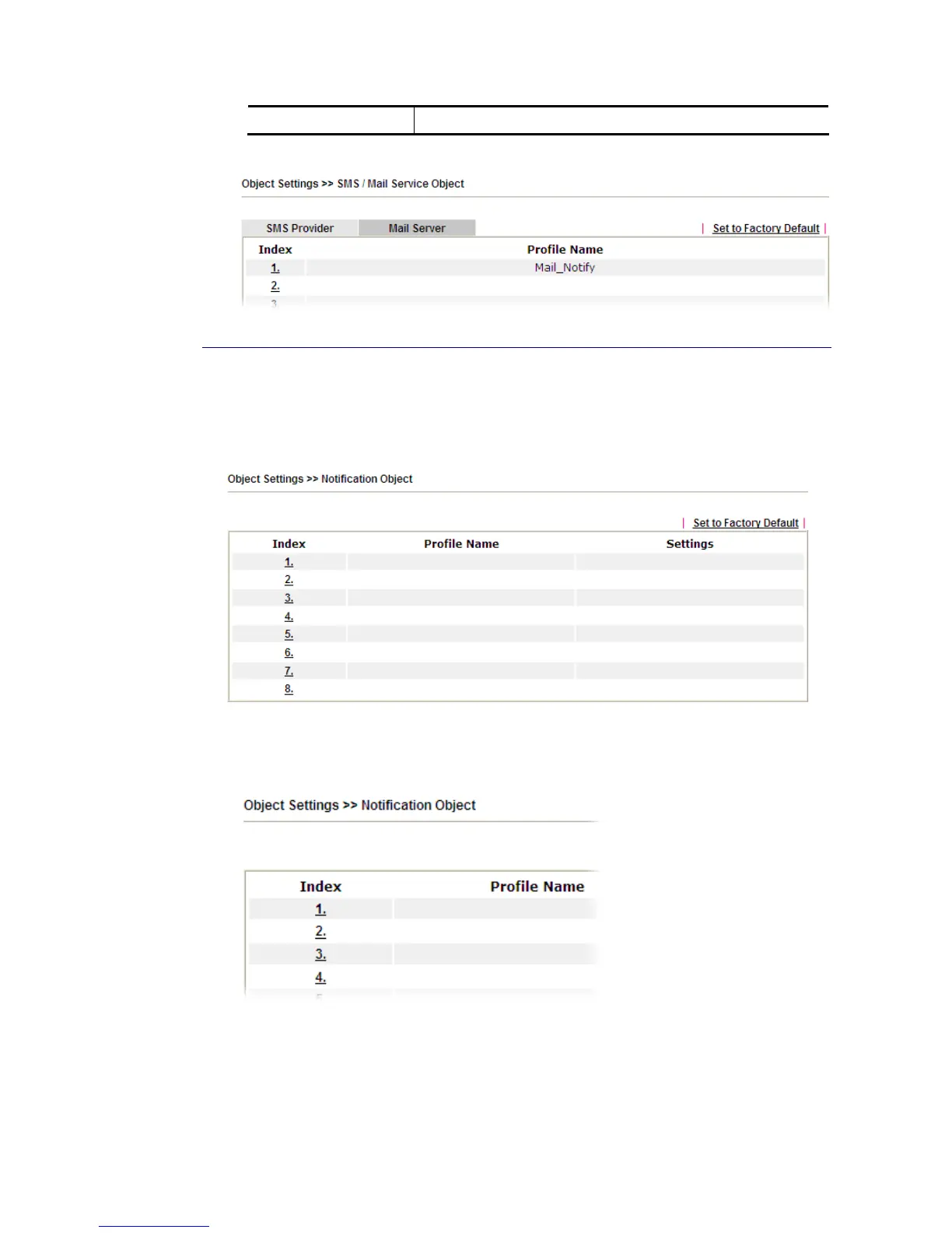 1. Open Object Setting>>Notification Object, and click the number (e.g., #1) under Index