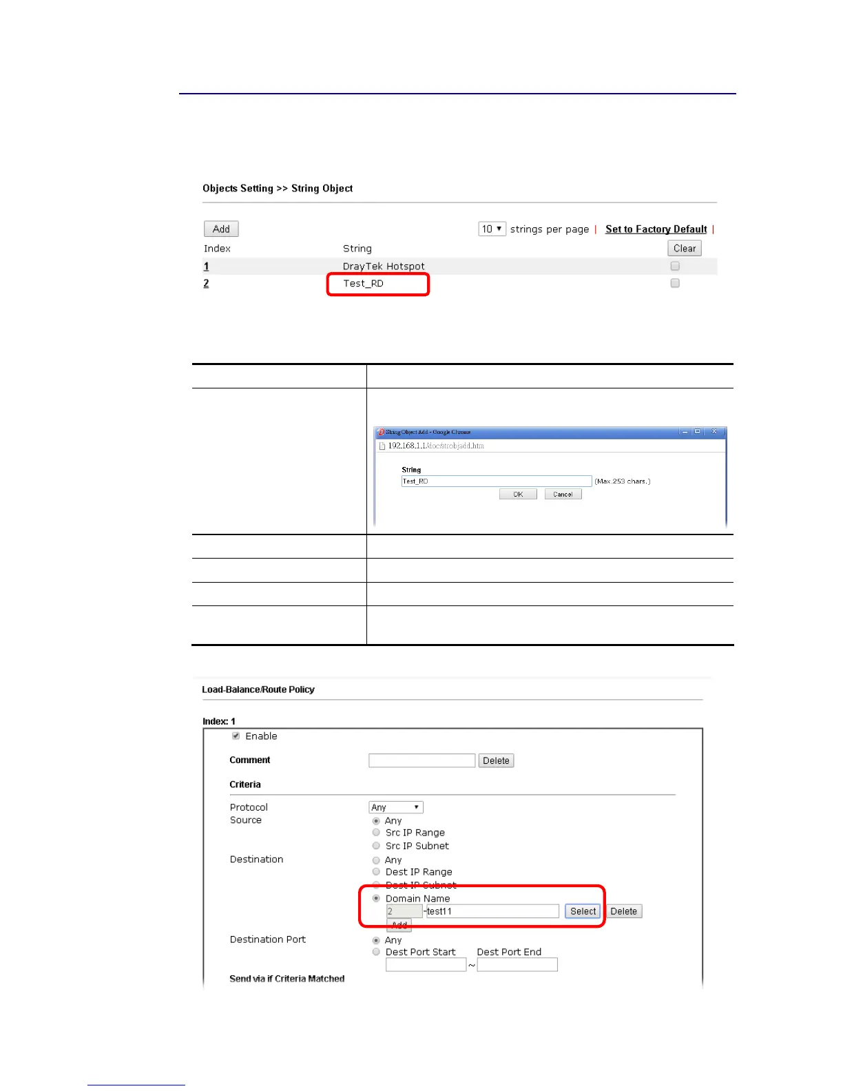 This page allows you to set string profiles which will be applied in route policy (domain name