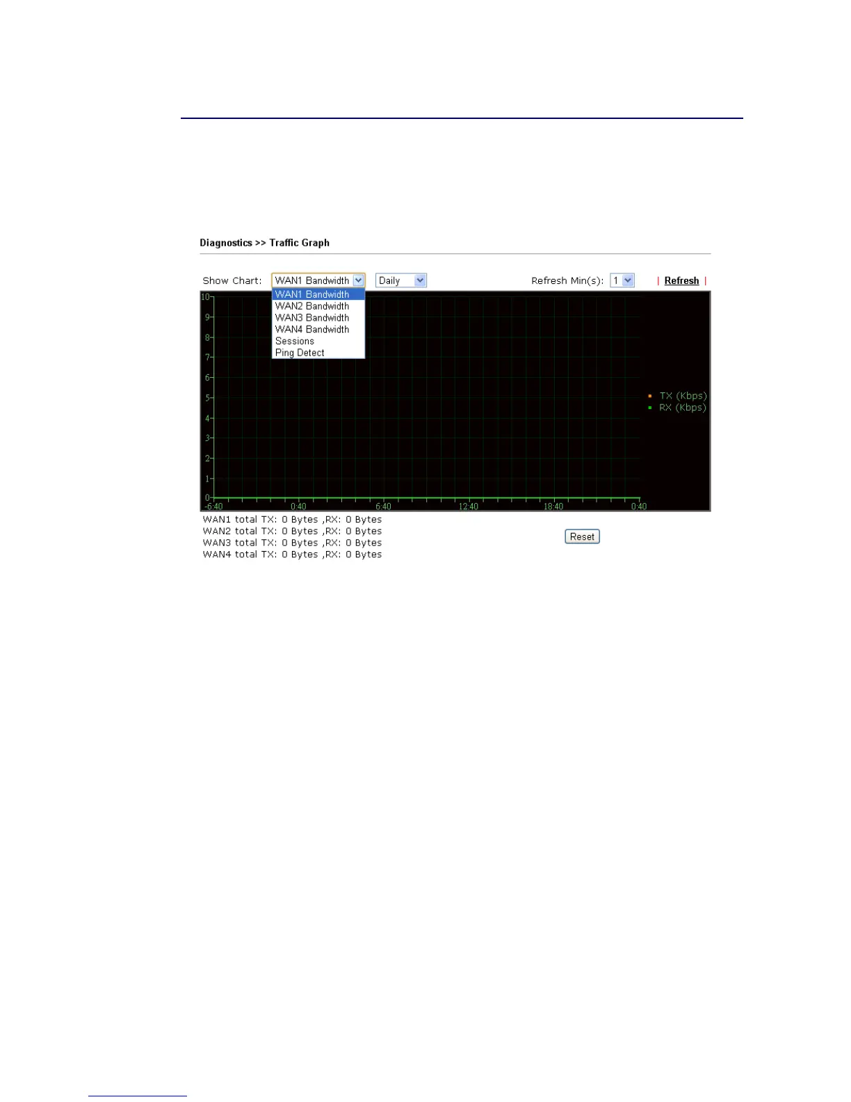 different traffic graph. Click Reset to zero the accumulated RX/TX (received and transmitted)