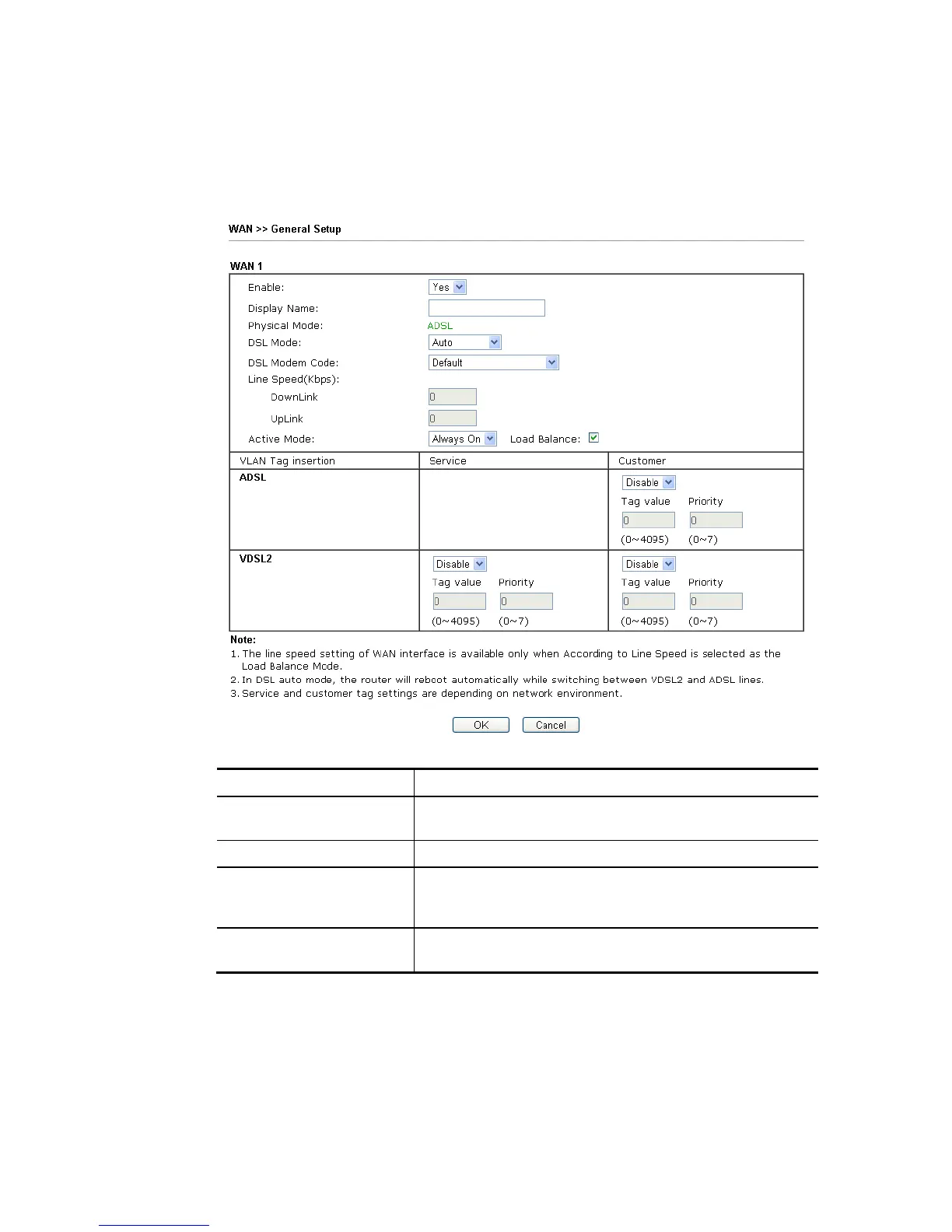 DSL Mode Specify the physical mode (VDSL or ADSL) for such router