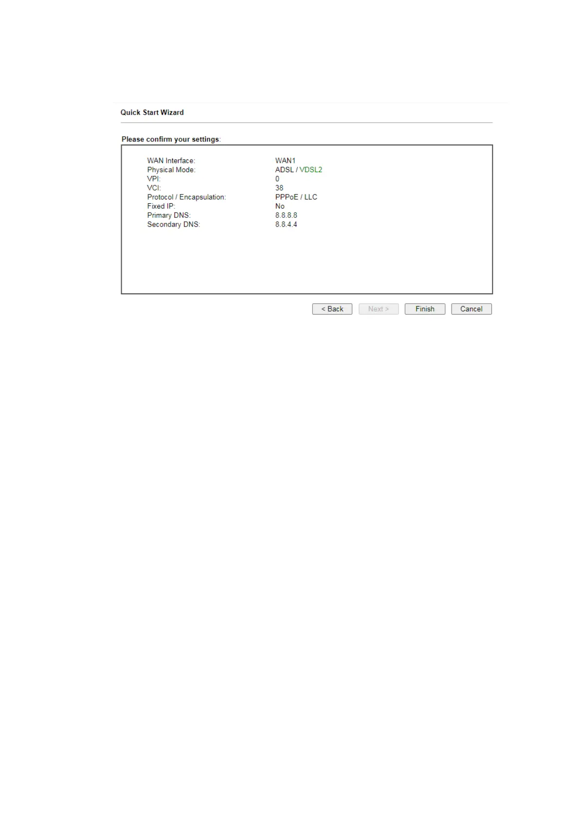 4. Click Finish. A page of Quick Start Wizard Setup OK!!! will appear. Then,