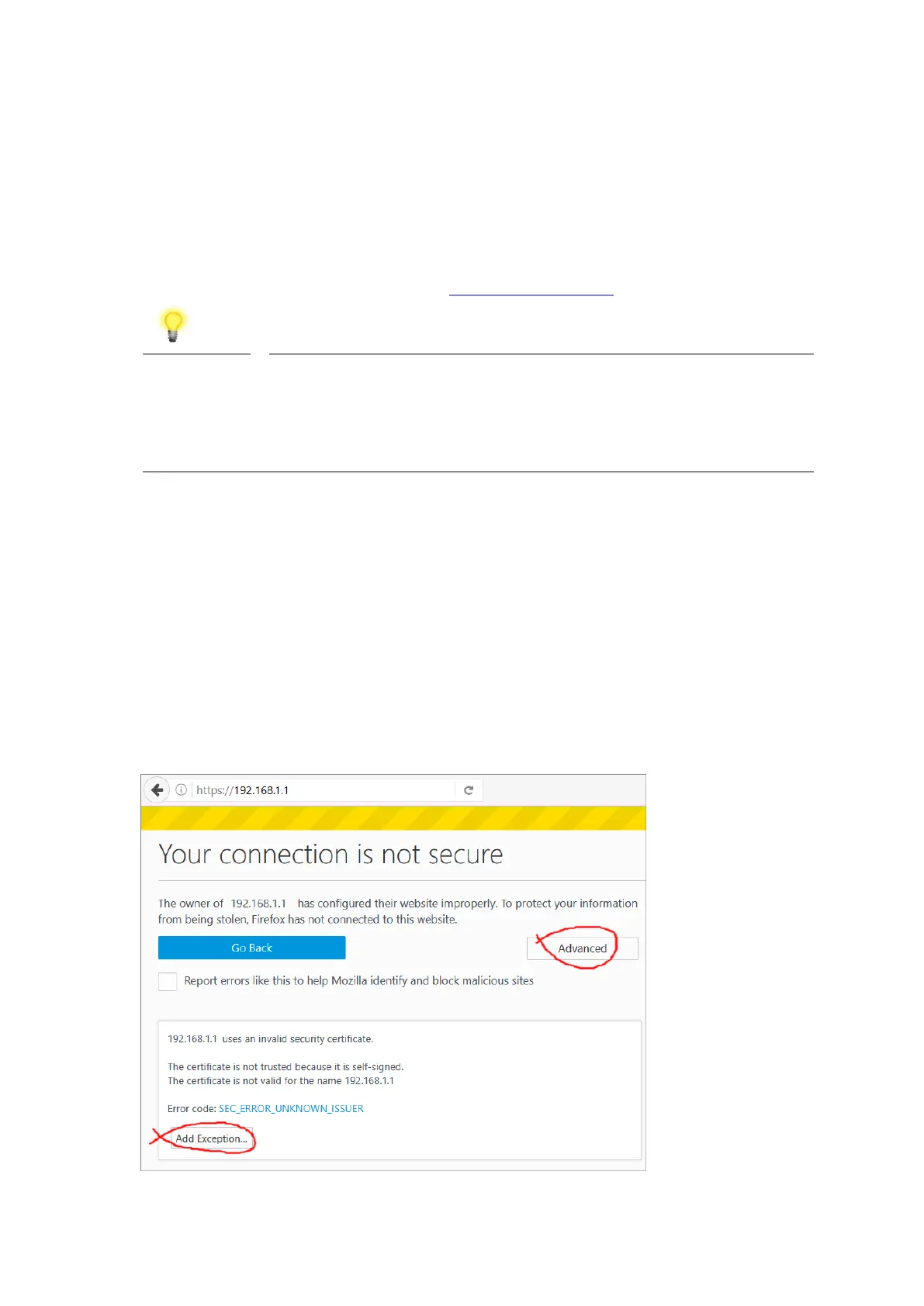An example of how to access the router via HTTPS with Mozilla Firefox: