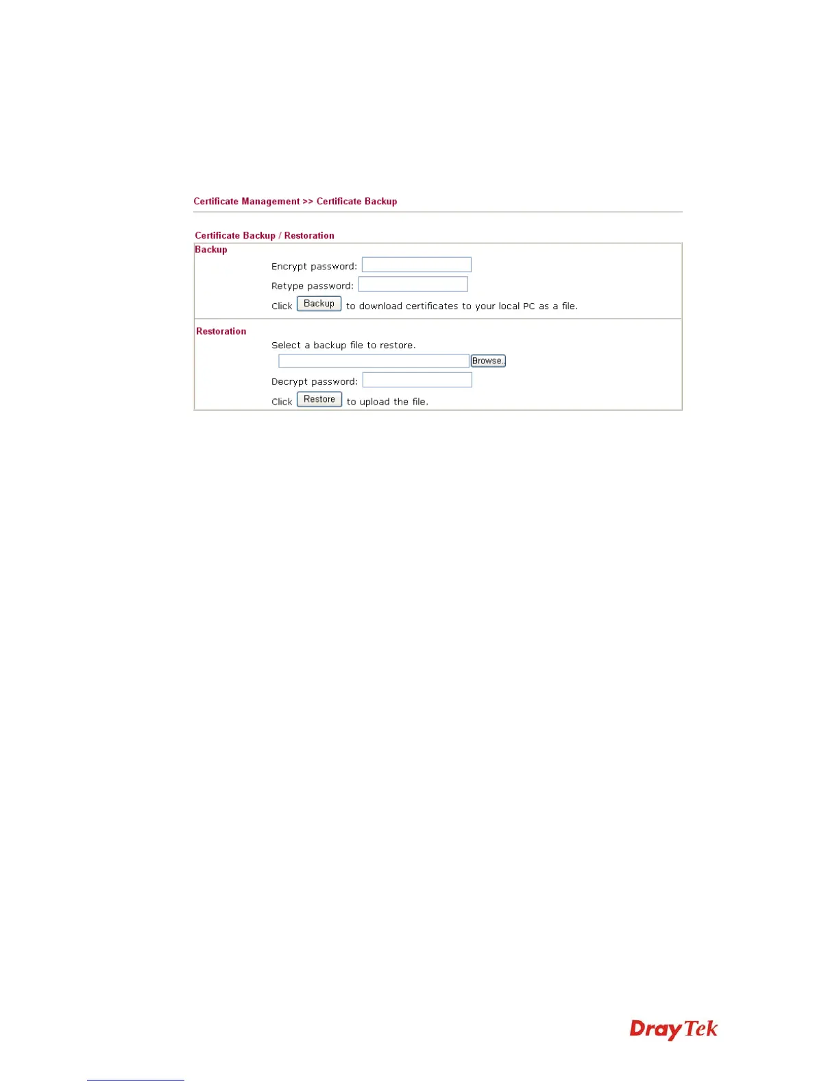 Draytek Vigor2910 Series - Certificate Backup
