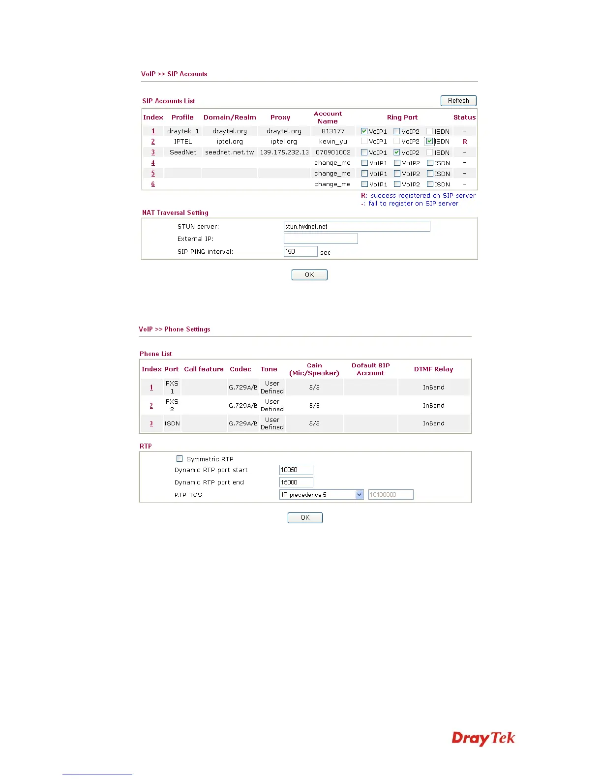 Default SIP Account – “draytel_1” is the default SIP account.