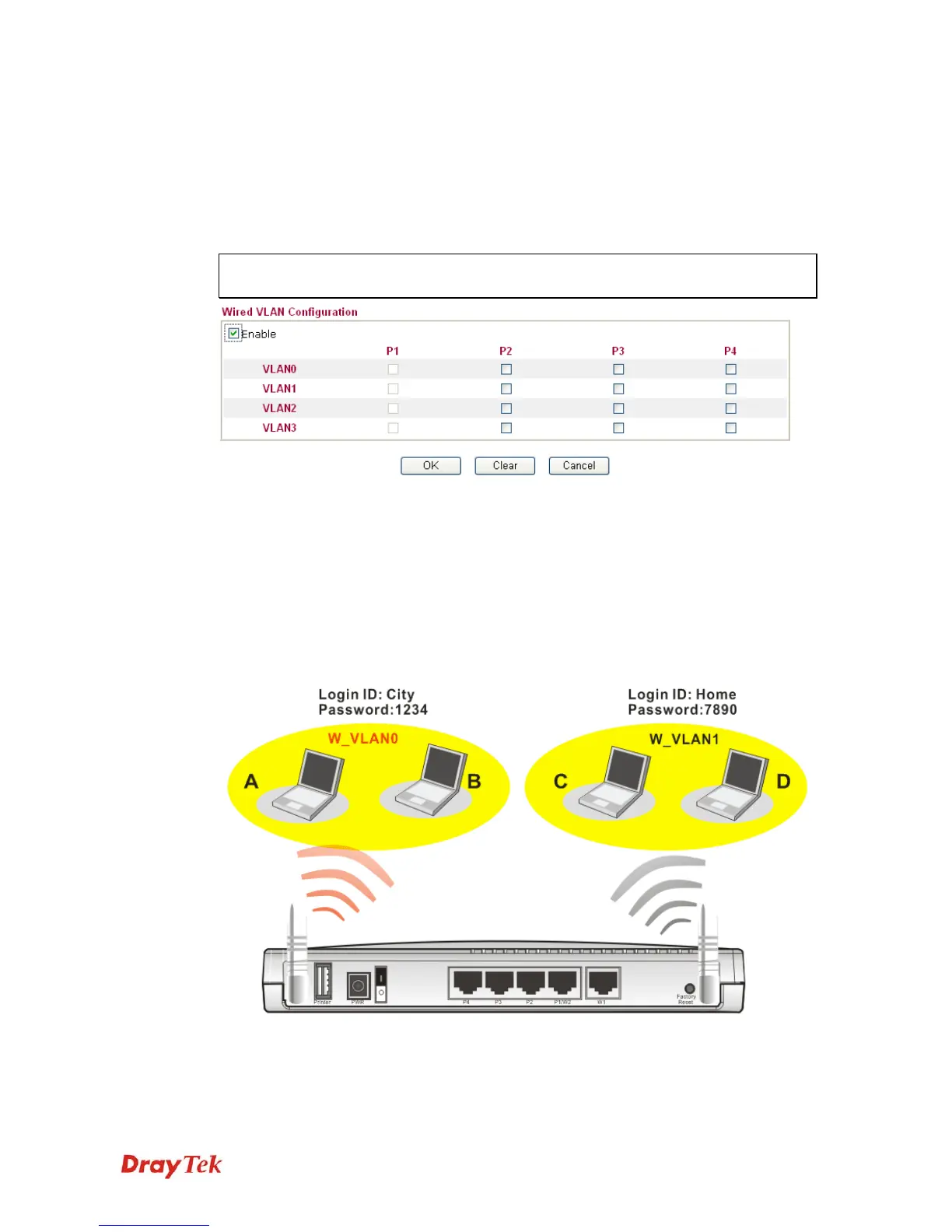 VLAN0-3 This router allows you to set 4 groups of virtual LAN.