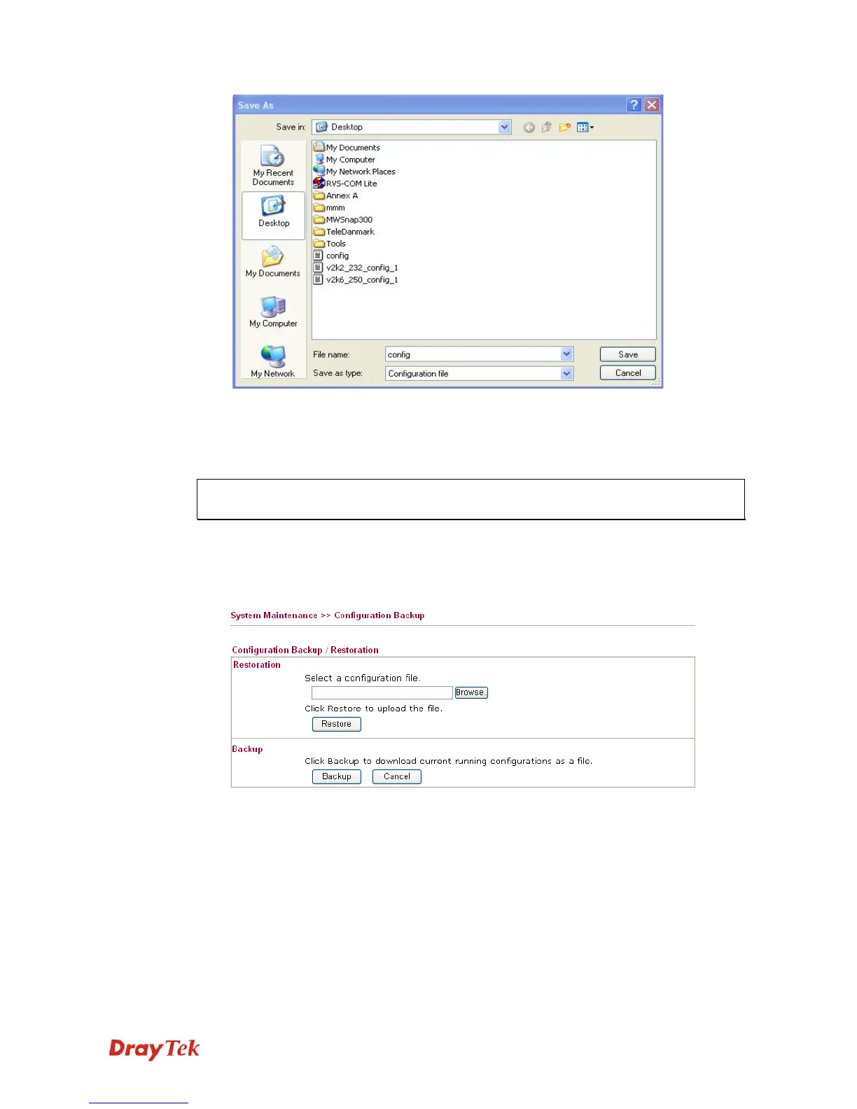 1. Go to System Maintenance >> Configuration Backup. The following windows will