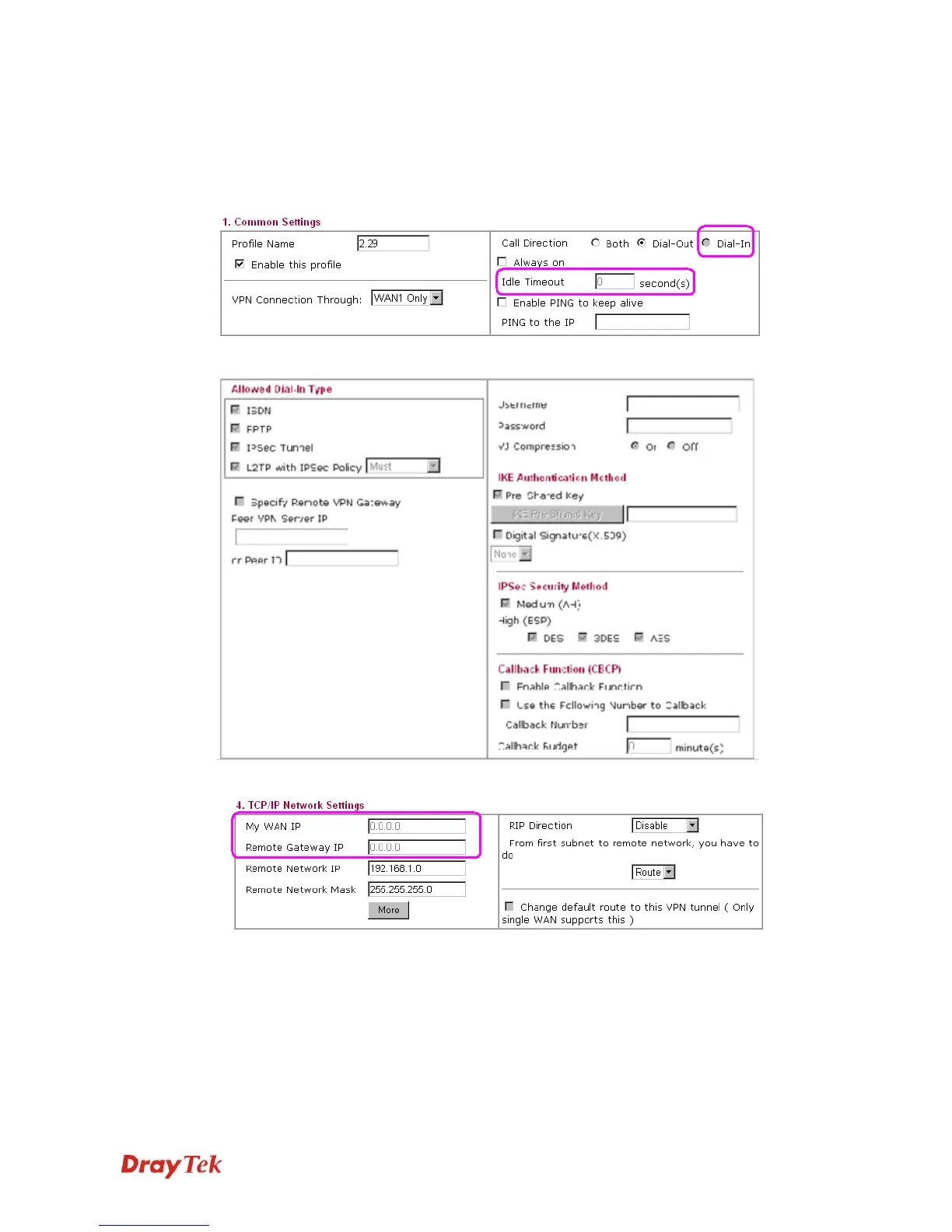 Dial-in call direction and Idle Timeout will be dimmish and cannot be used.